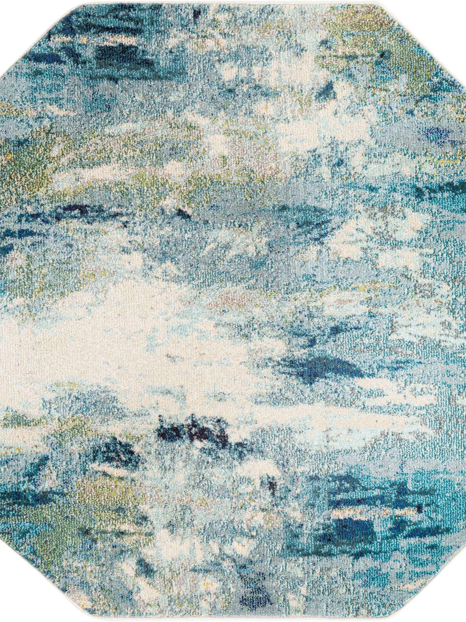 Light Blue 5' x 5' Chromatic Octagon Area Rug 100% Polypropylene With Cotton Backing Abstract Modern Colorful Carpet Mat for Home Decor & Interior Design