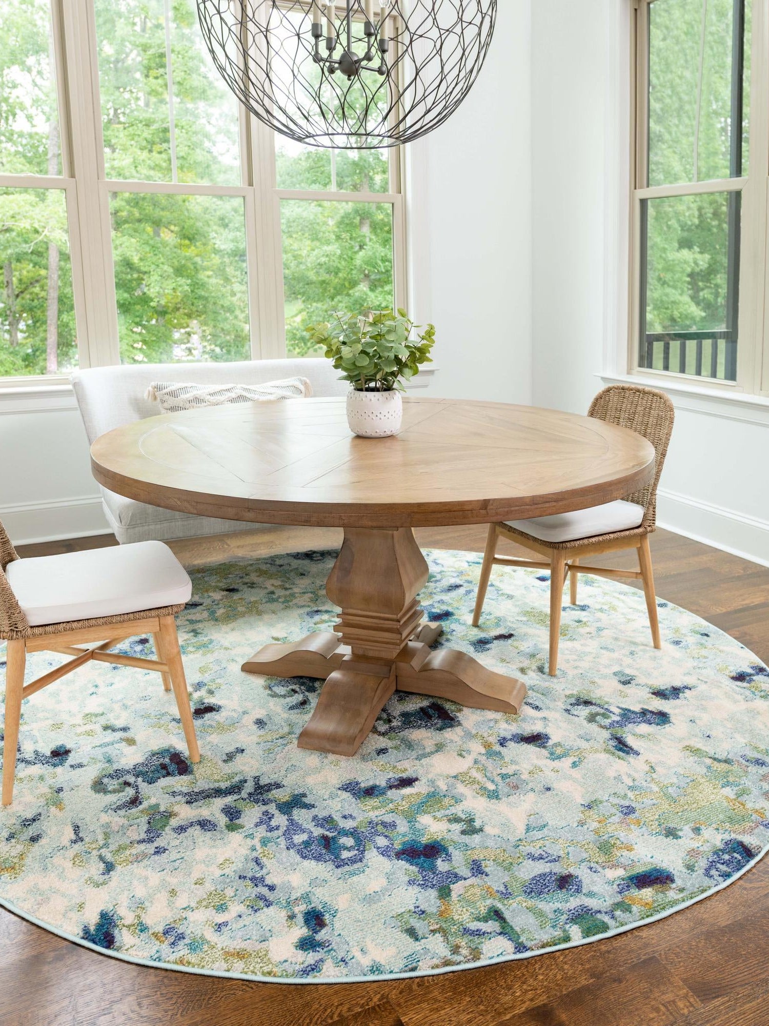 Washable Blue 5' x 5' Timeless Round Area Rug Easy to Clean Stain Resistant & Durable