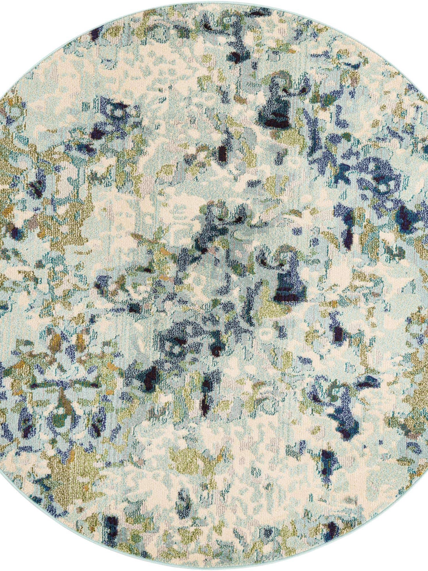 Light Blue 6' x 6' Chromatic Round Area Rug 100% Polypropylene With Cotton Backing Abstract Modern Colorful Carpet Mat for Home Decor & Interior Design