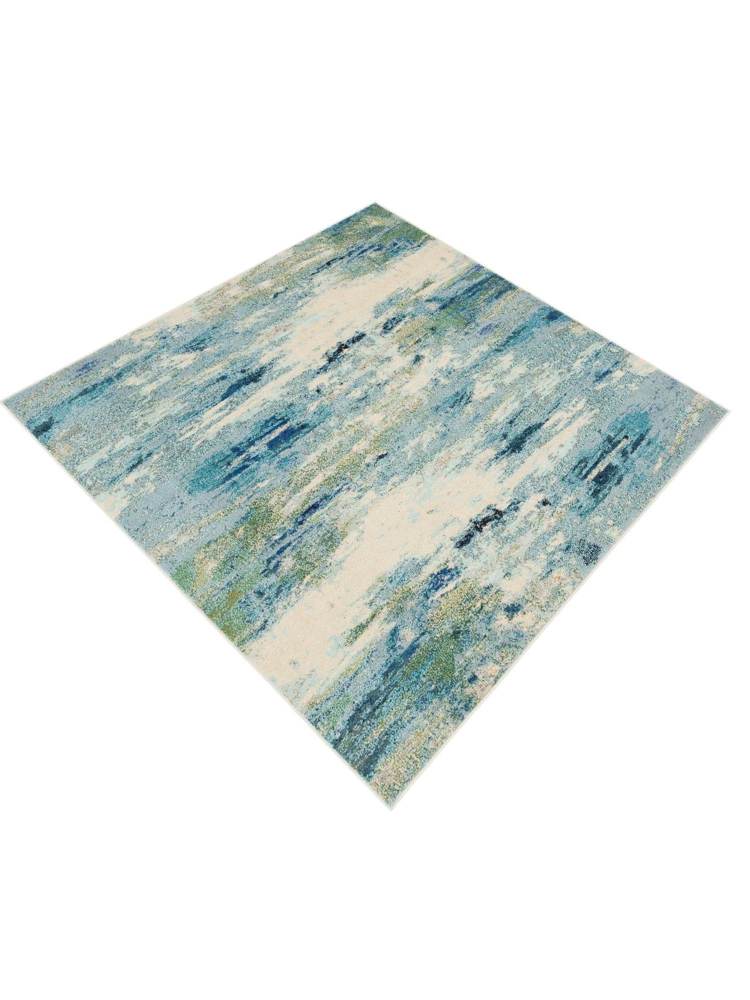 Light Blue 6' 1 x 6' 1 Chromatic Square Area Rug 100% Polypropylene With Cotton Backing Abstract Modern Colorful Carpet Mat for Home Decor & Interior Design
