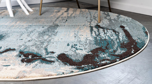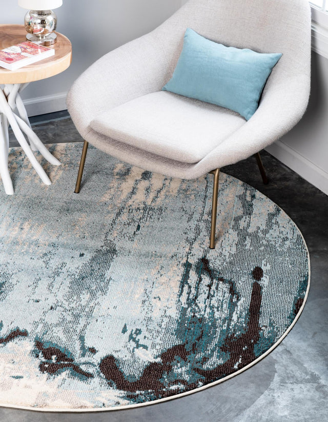 Light Blue 6' 1 x 6' 1 Estrella Round Area Rug 100% Polypropylene Non-Shedding Stain Resistant Carpet Colorful Modern Abstract Design Easy Clean for Home Decor