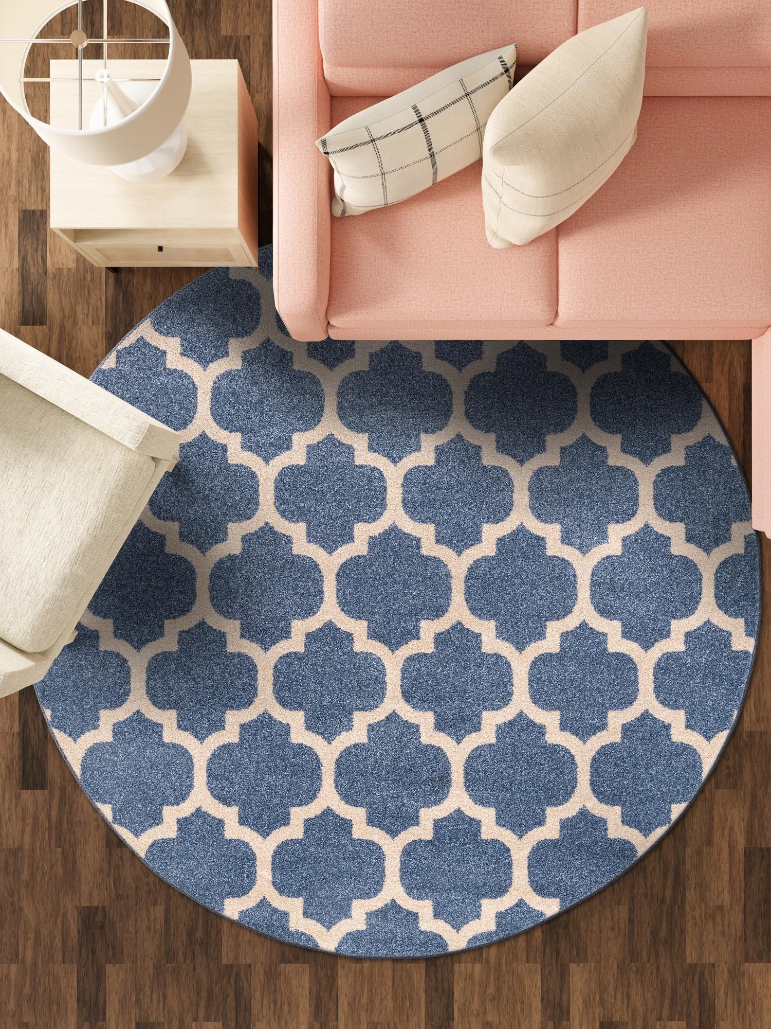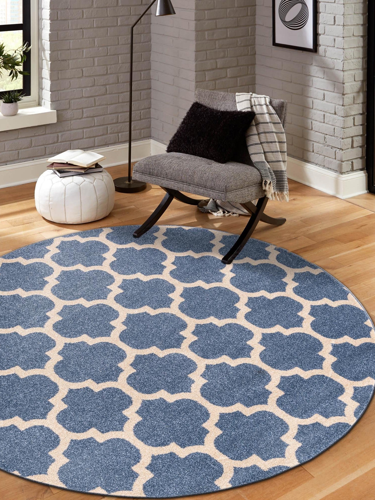 Light Blue 6' 1 x 6' 1 Trellis Round Area Rug