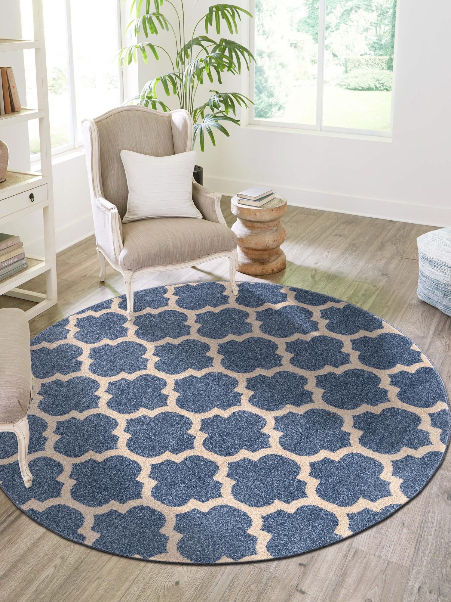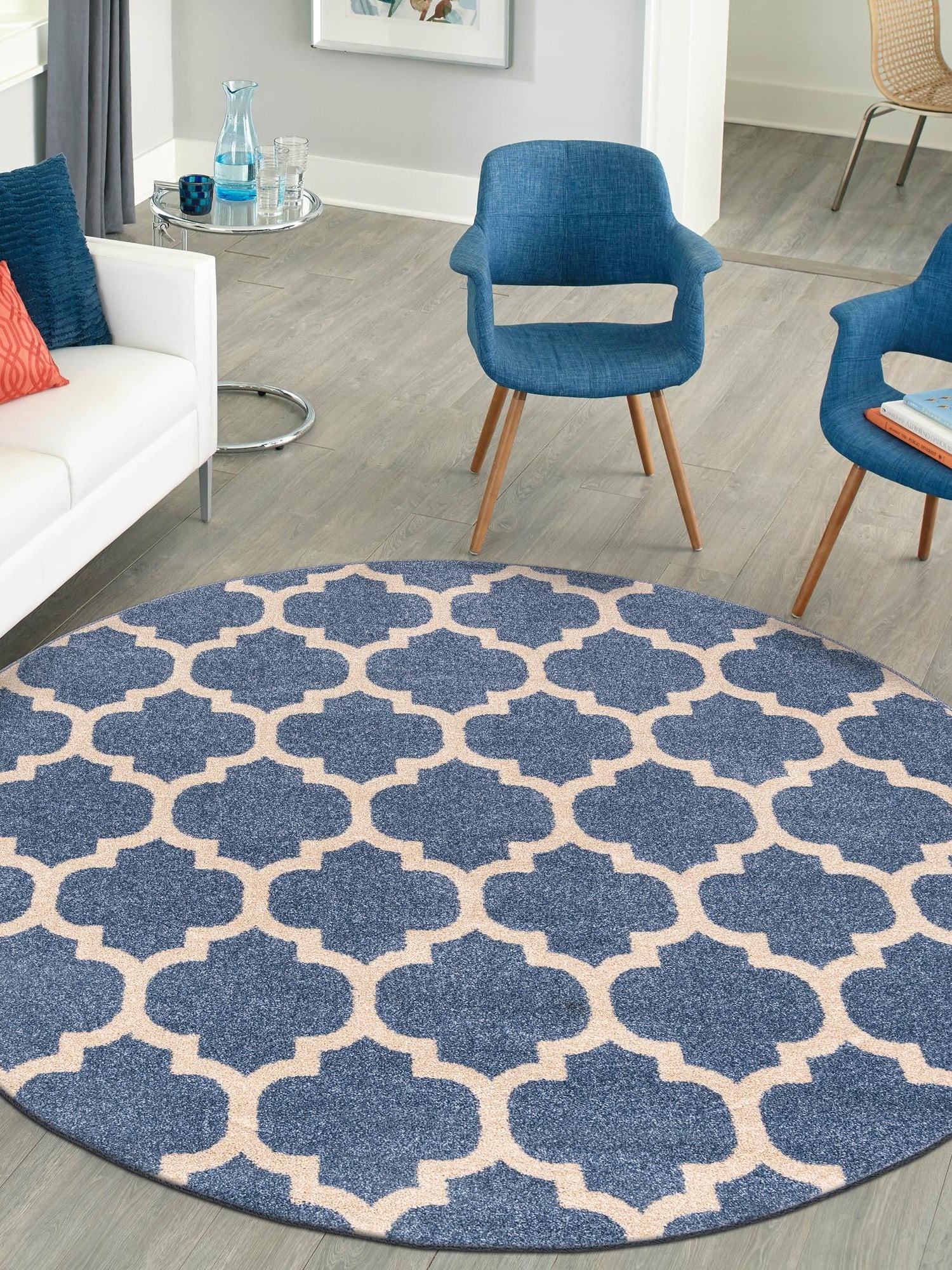 Washable Blue 5' x 5' Timeless Round Area Rug Easy to Clean Stain Resistant & Durable