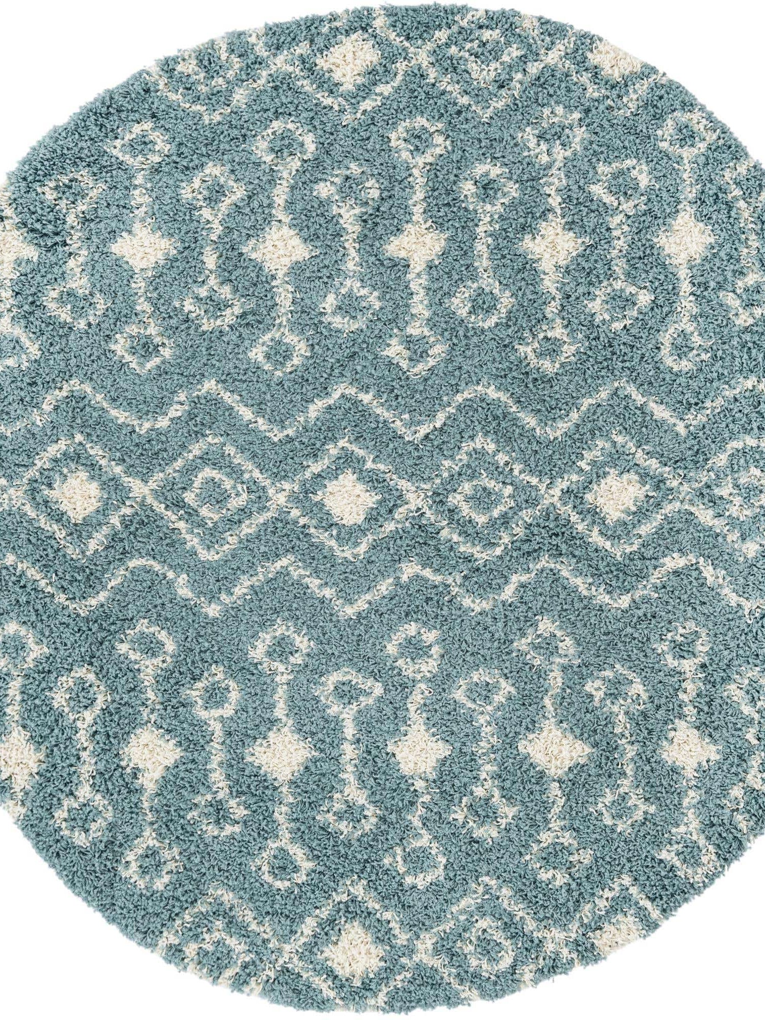 Light Blue 6' 1 x 6' 1 Moroccan Trellis Shag Round Area Rug Thick Soft Touch Fluffy & Plush Shaggy Pile