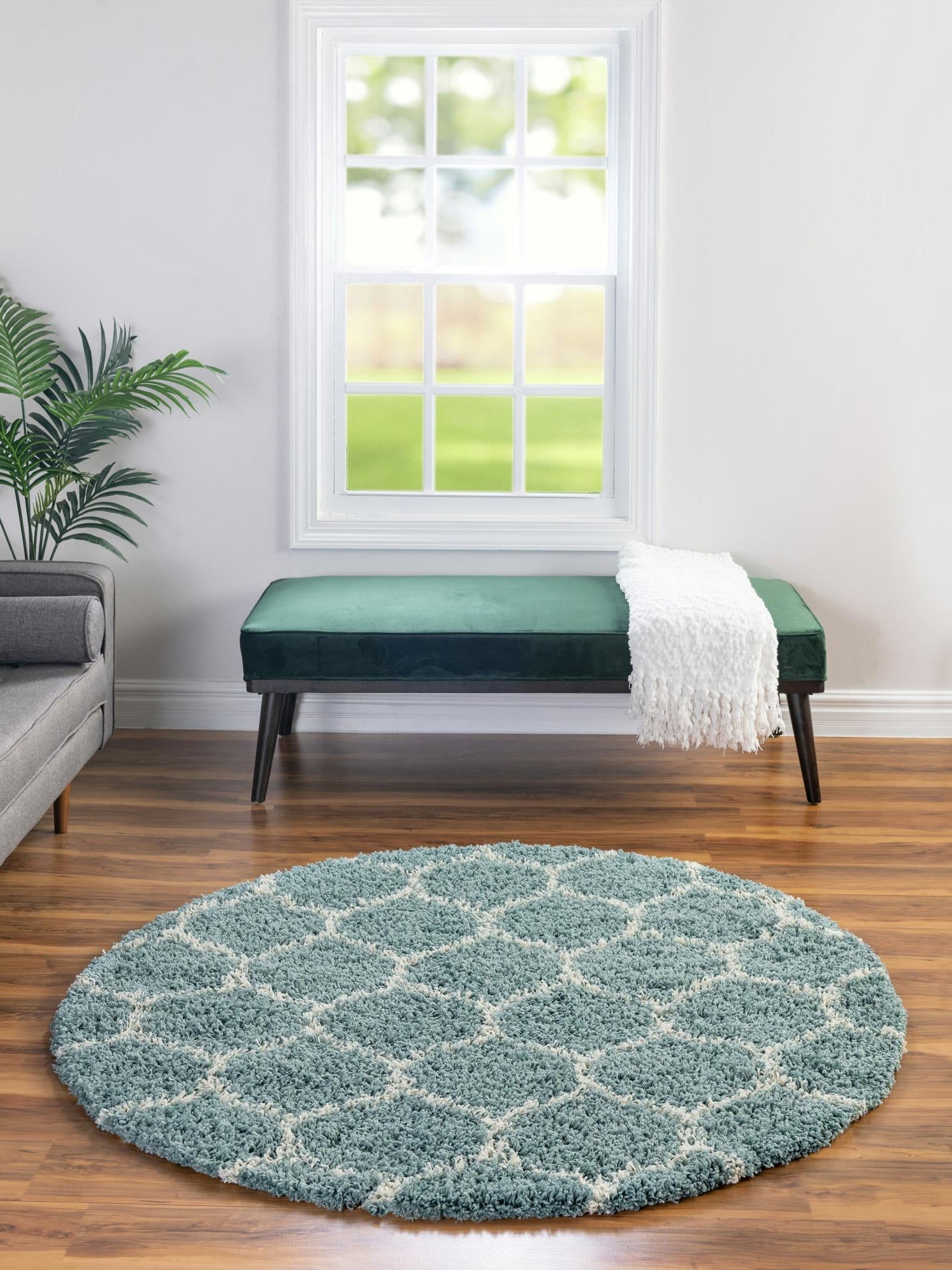 Light Blue 6' x 6' Trellis Shag Round Area Rug Thick Soft T...