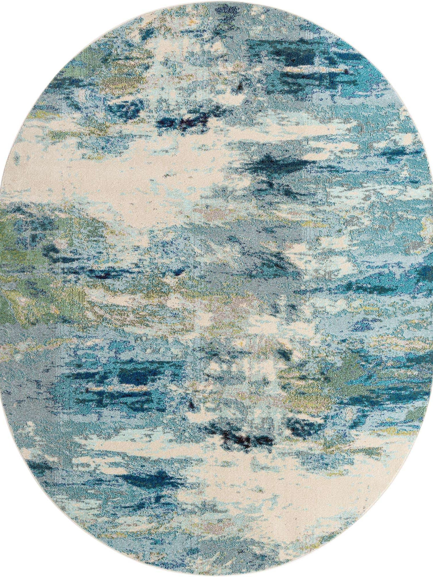 Light Blue 7' 11 x 10' Chromatic Oval Area Rug 100% Polypropylene With Cotton Backing Abstract Modern Colorful Carpet Mat for Home Decor & Interior Design
