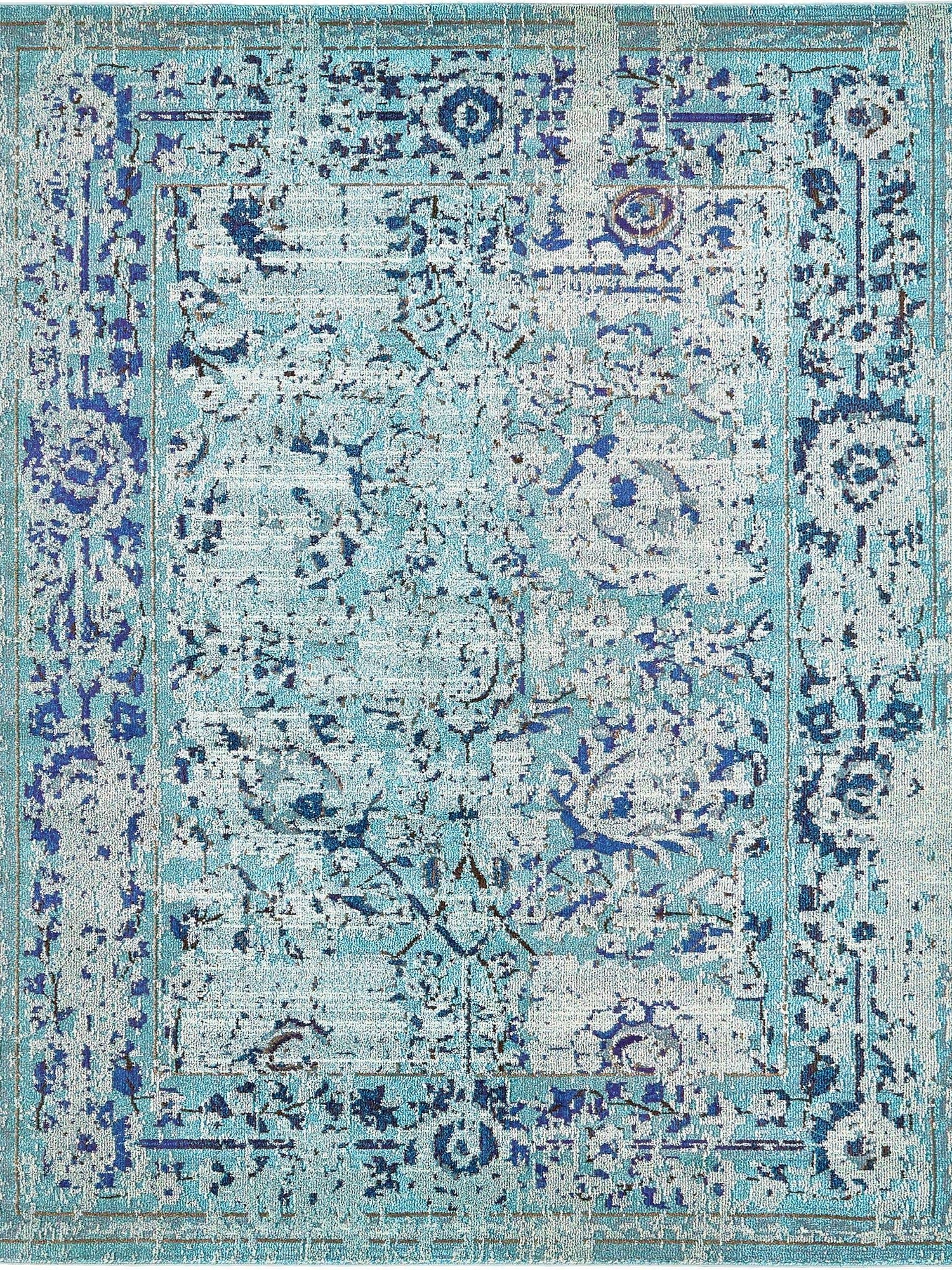 Light Blue 8' x 10' Medici Rectangle Area Rug 100% Polypropylene Traditional Vintage Classic Carpet for Home Interior Design Decor