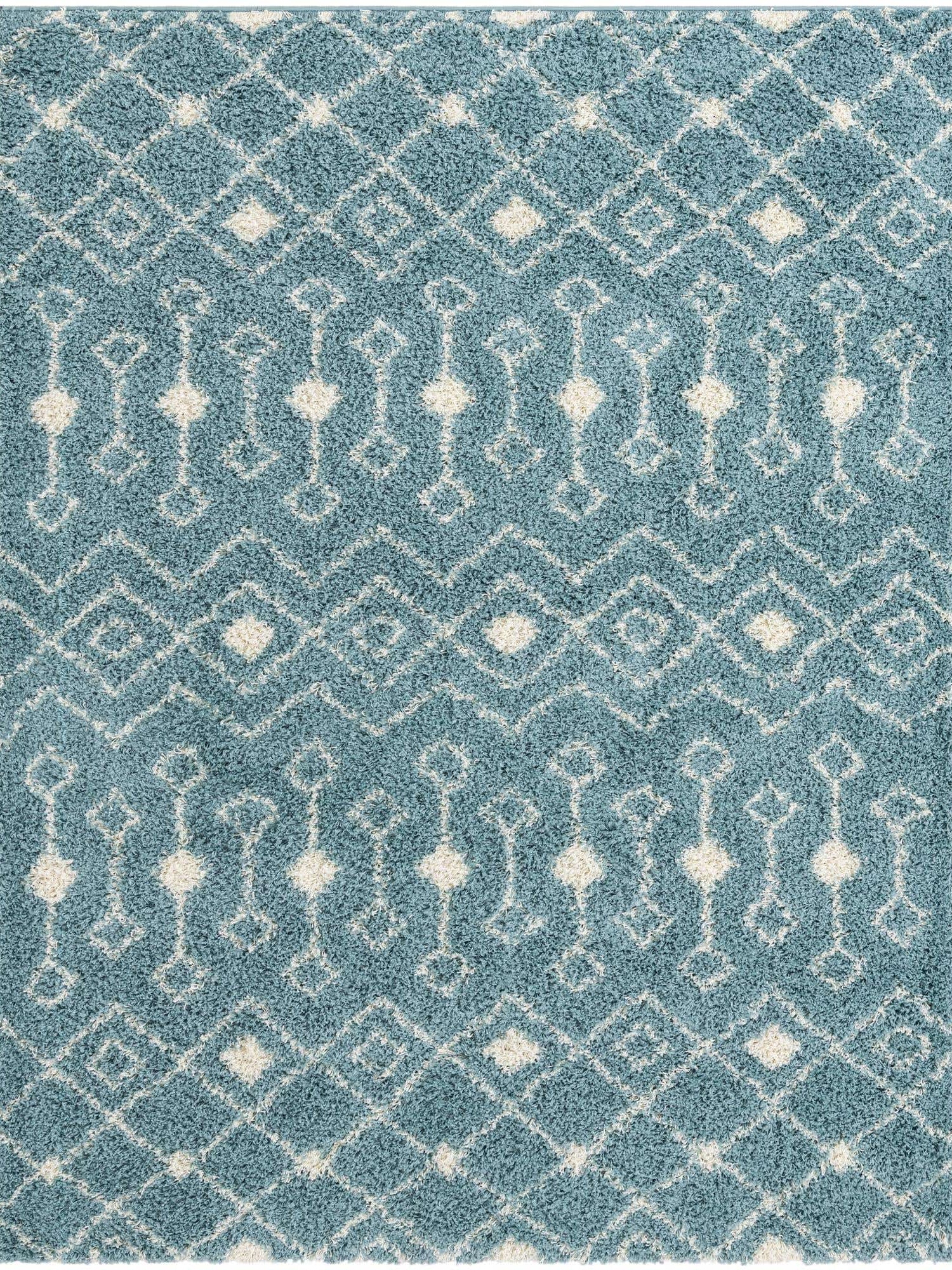 Light Blue 7' 10 x 10' Moroccan Trellis Shag Rectangle Area Rug Thick Soft Touch Fluffy & Plush Shaggy Pile