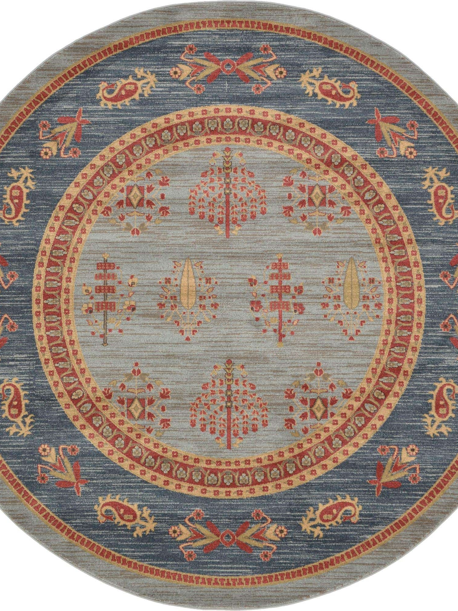 Washable Blue 5' x 5' Timeless Round Area Rug Easy to Clean Stain Resistant & Durable