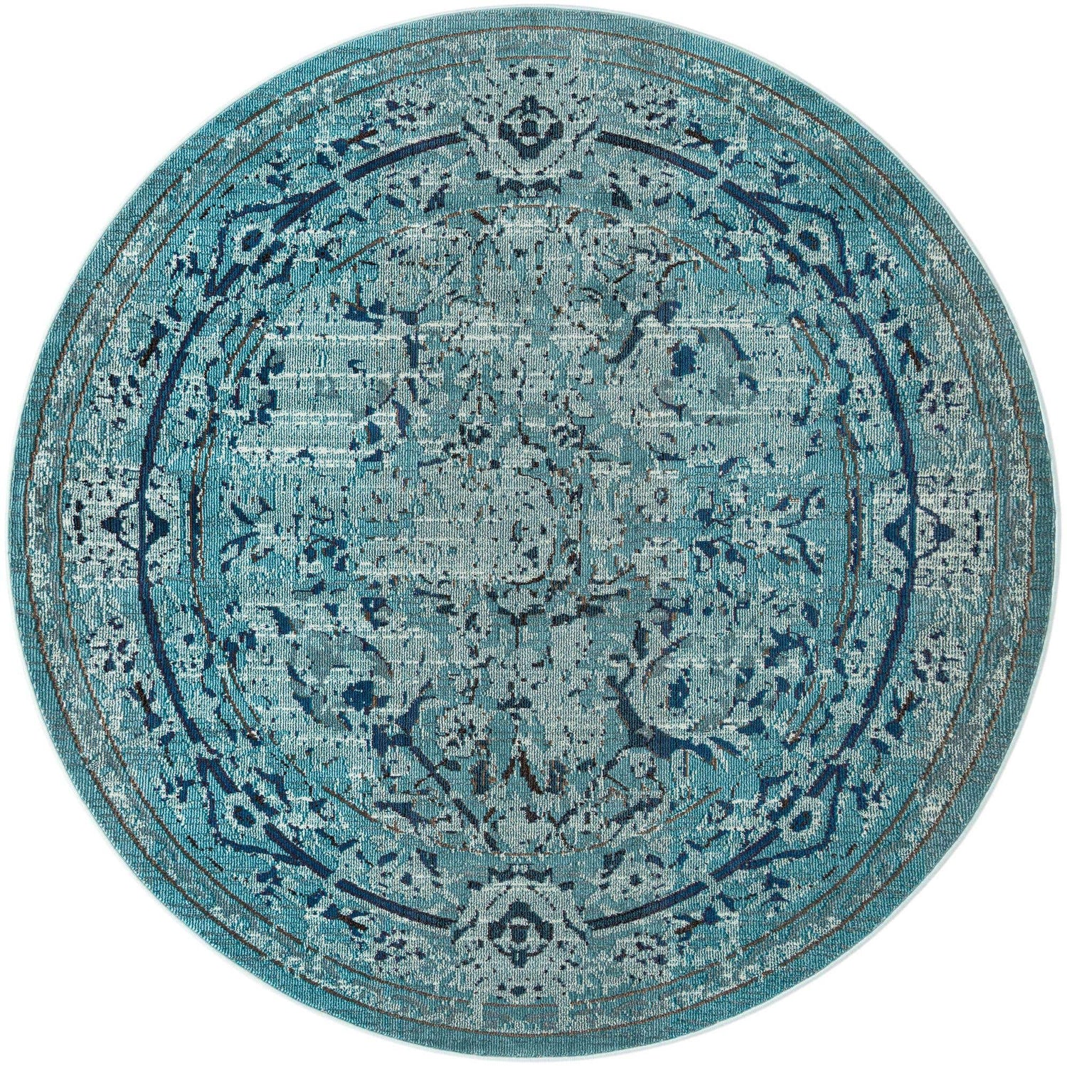 Washable Blue 5' x 5' Timeless Round Area Rug Easy to Clean Stain Resistant & Durable