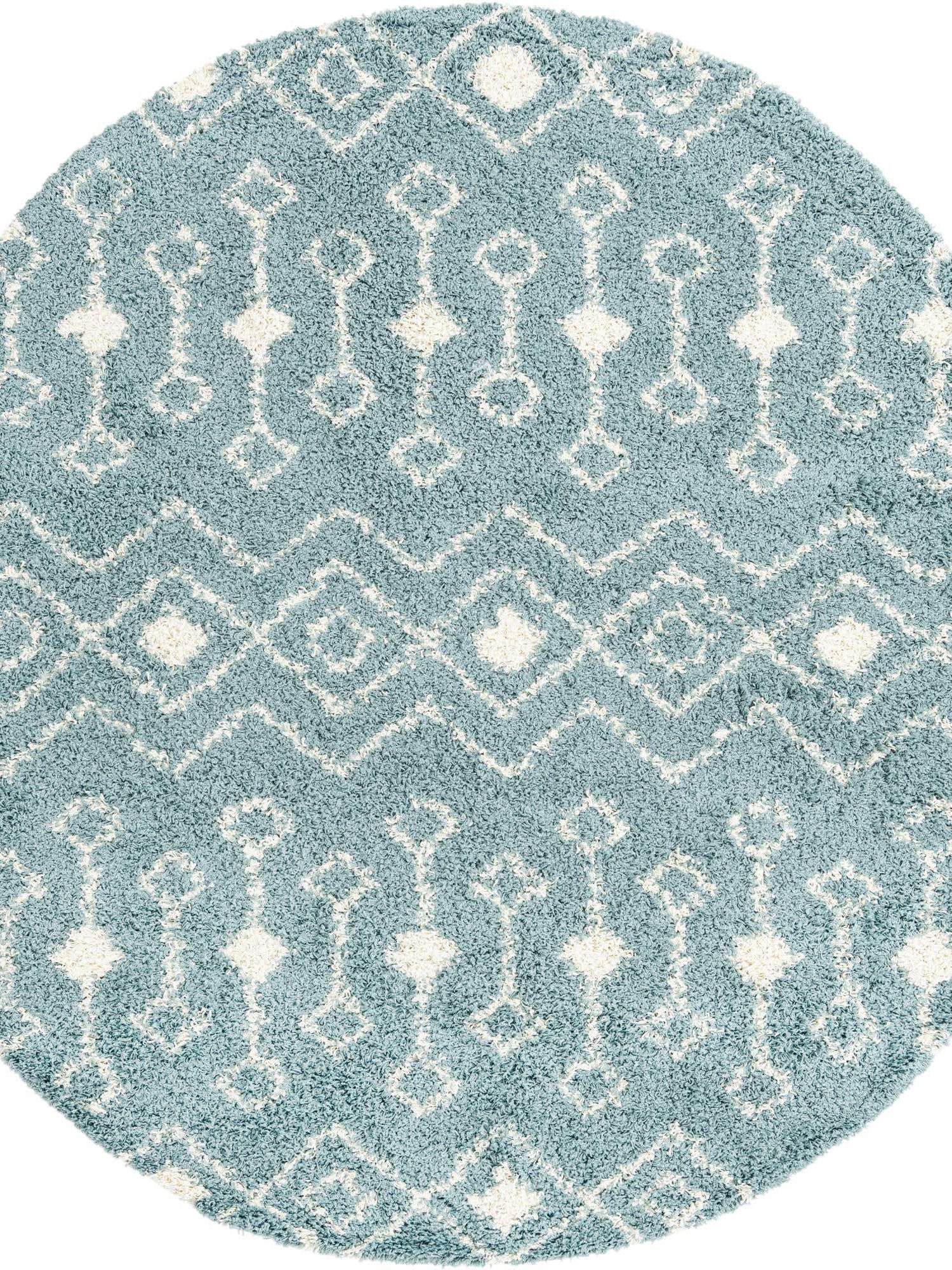 Light Blue 7' 10 x 7' 10 Moroccan Trellis Shag Round Area R...