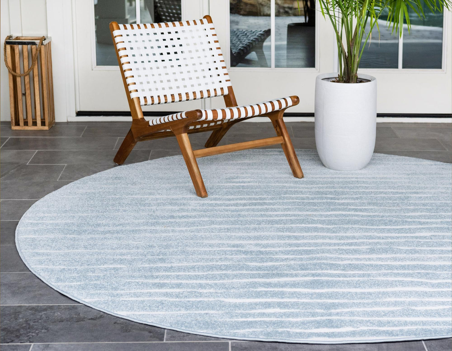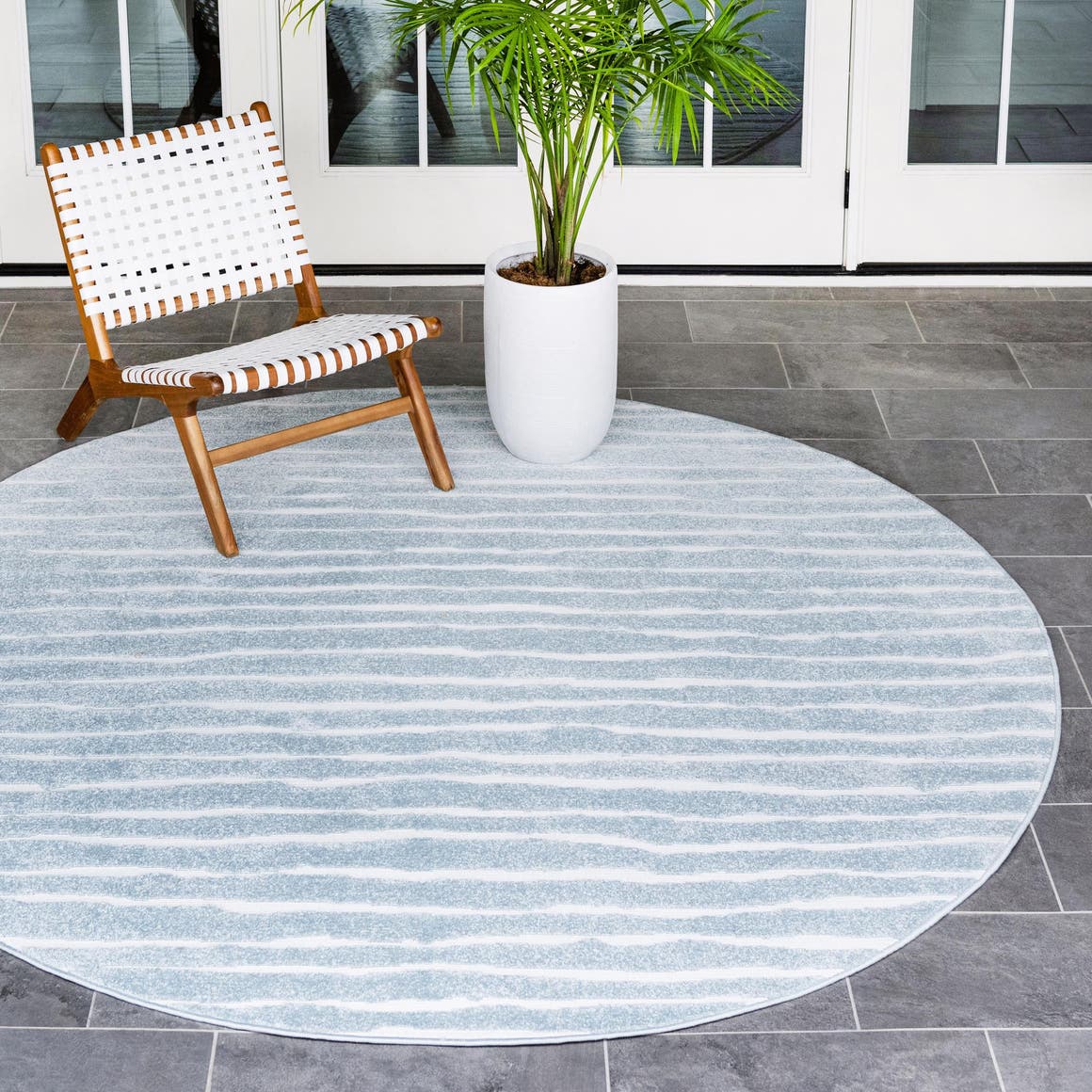 Light Blue 8' x 8' Sabrina Soto Outdoor Round Area Rug Weather Resistant for Patio, Deck, Terrace, Balcony, Porch
