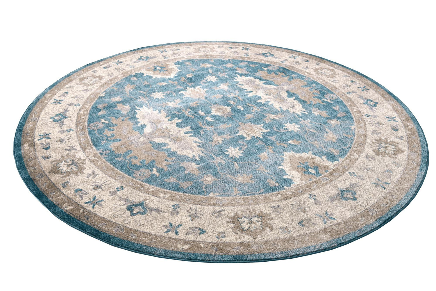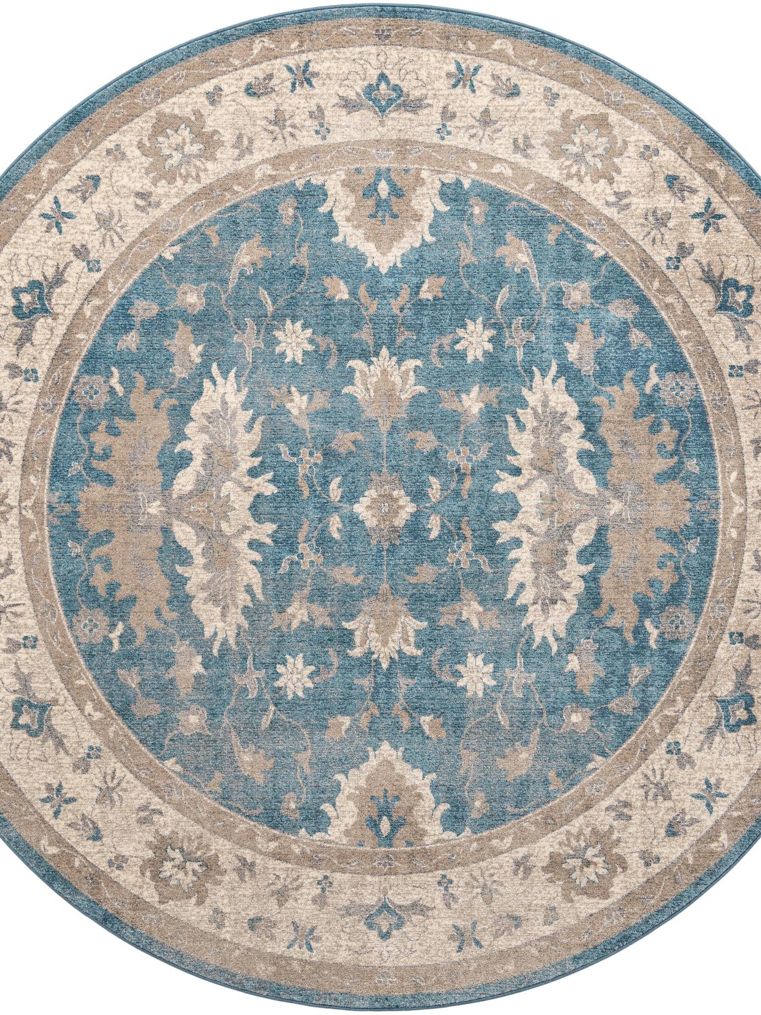 Light Blue 8' x 8' Salzburg Round Area Rug Stain Resistant Easy Clean Traditional Classic Design Durable Carpet for Affordable Interior Home Decorating