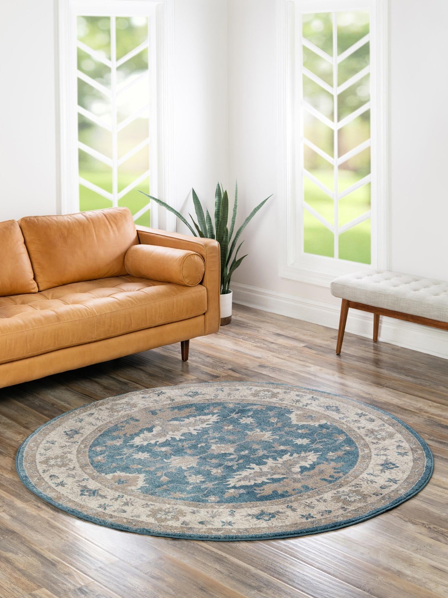 Washable Blue 5' x 5' Timeless Round Area Rug Easy to Clean Stain Resistant & Durable