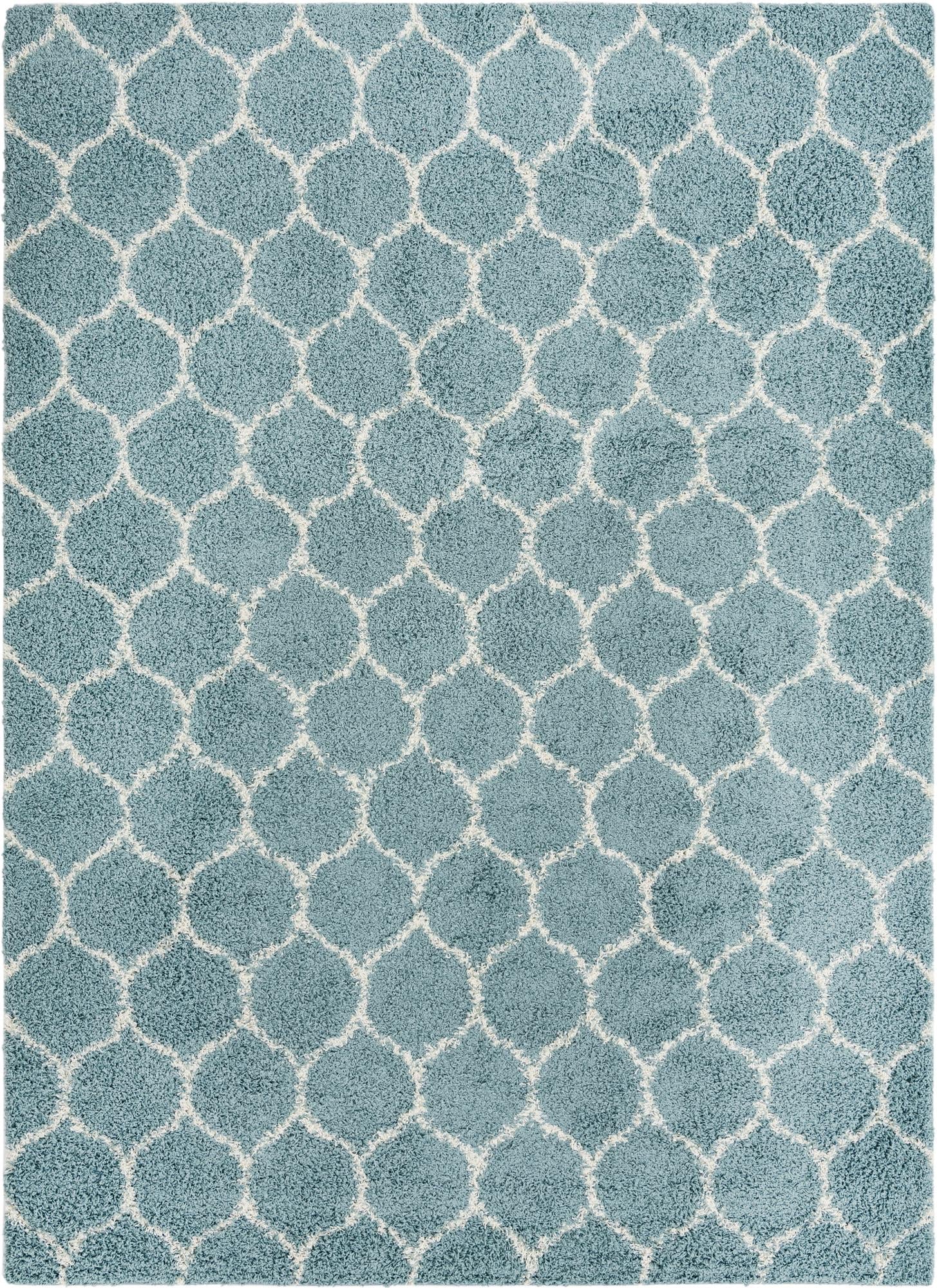 Light Blue 9' x 12' Trellis Shag Rectangle Area Rug Thick S...