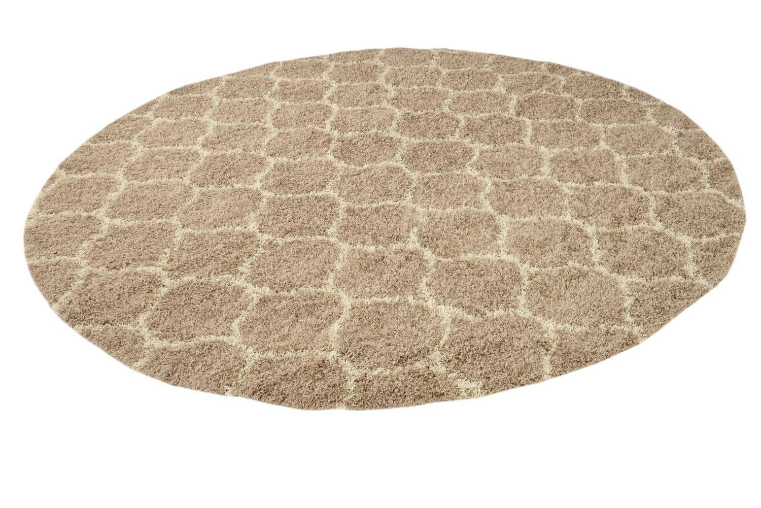 Light Brown 10' x 10' Trellis Shag Round Area Rug Thick Soft Touch Fluffy & Plush Shaggy Pile