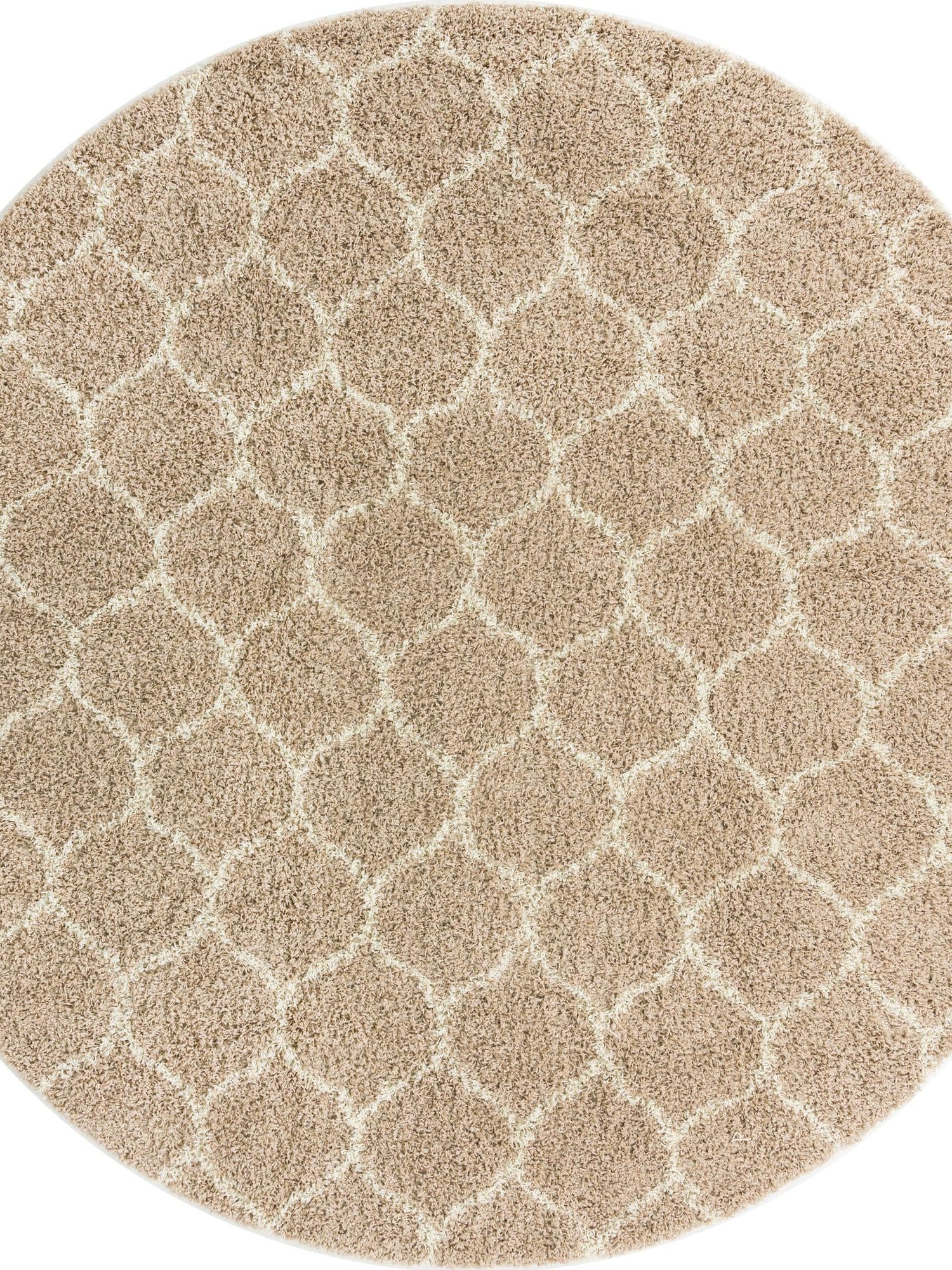 Light Brown 10' x 10' Trellis Shag Round Area Rug Thick Sof...
