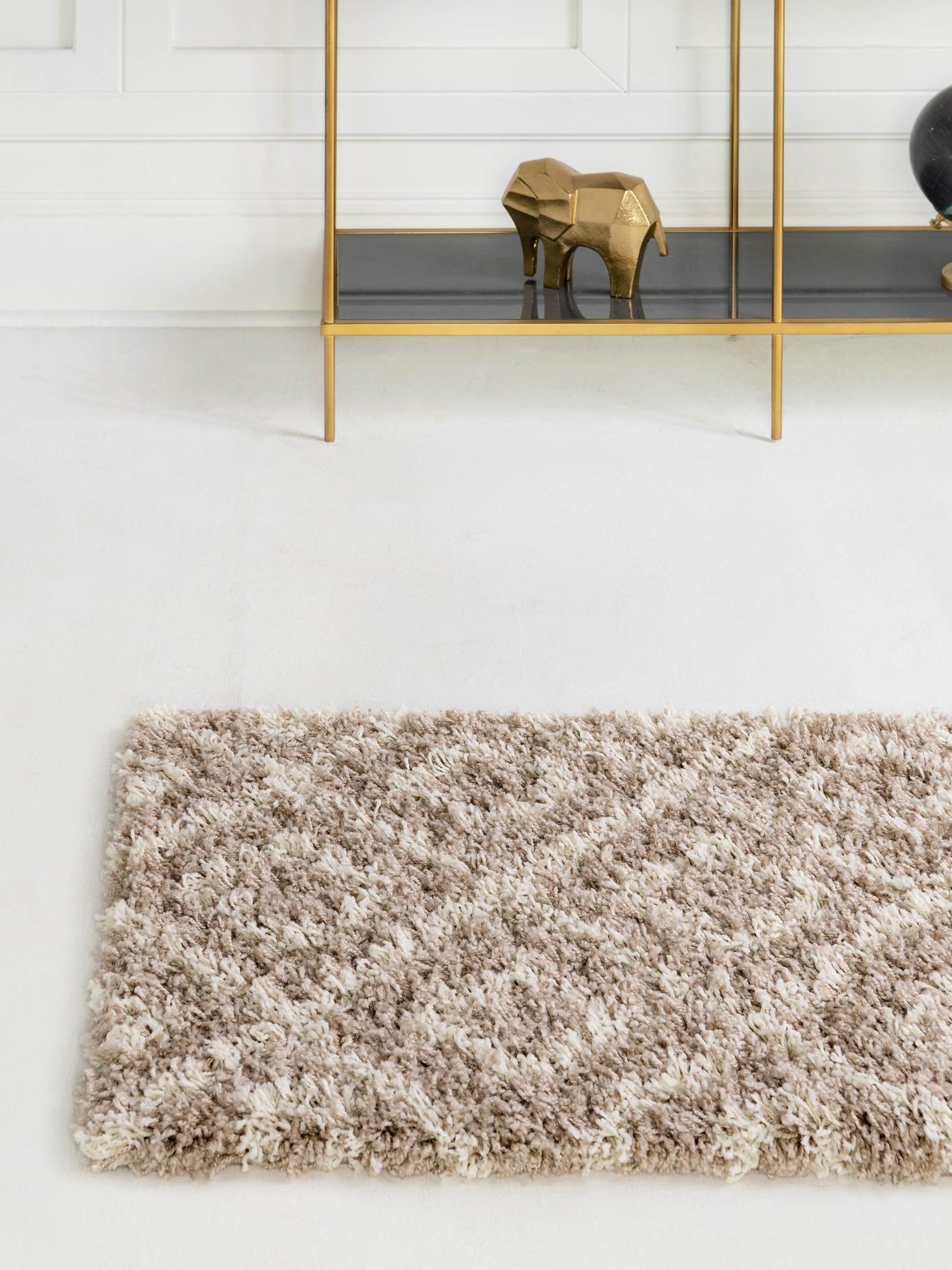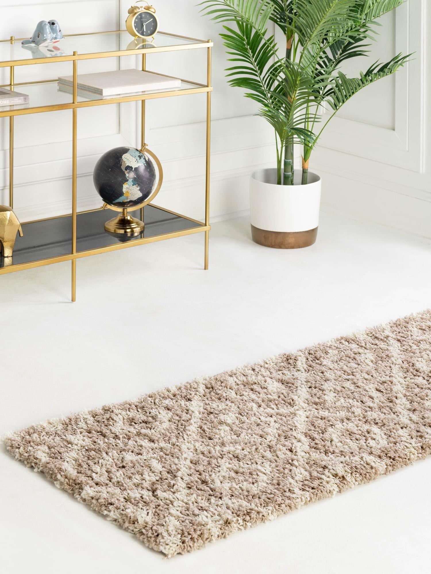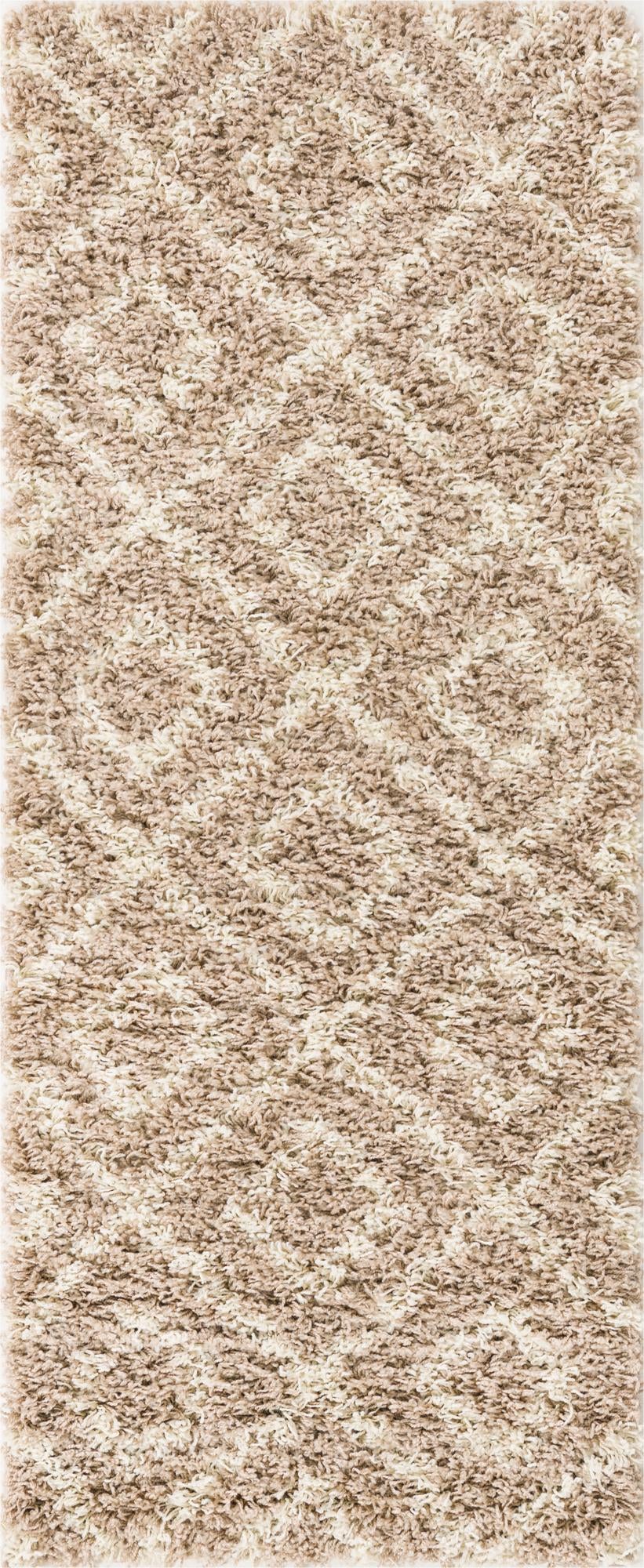Light Brown 2' x 5' 1 Trellis Shag Runner Area Rug Thick Soft Touch Fluffy & Plush Shaggy Pile