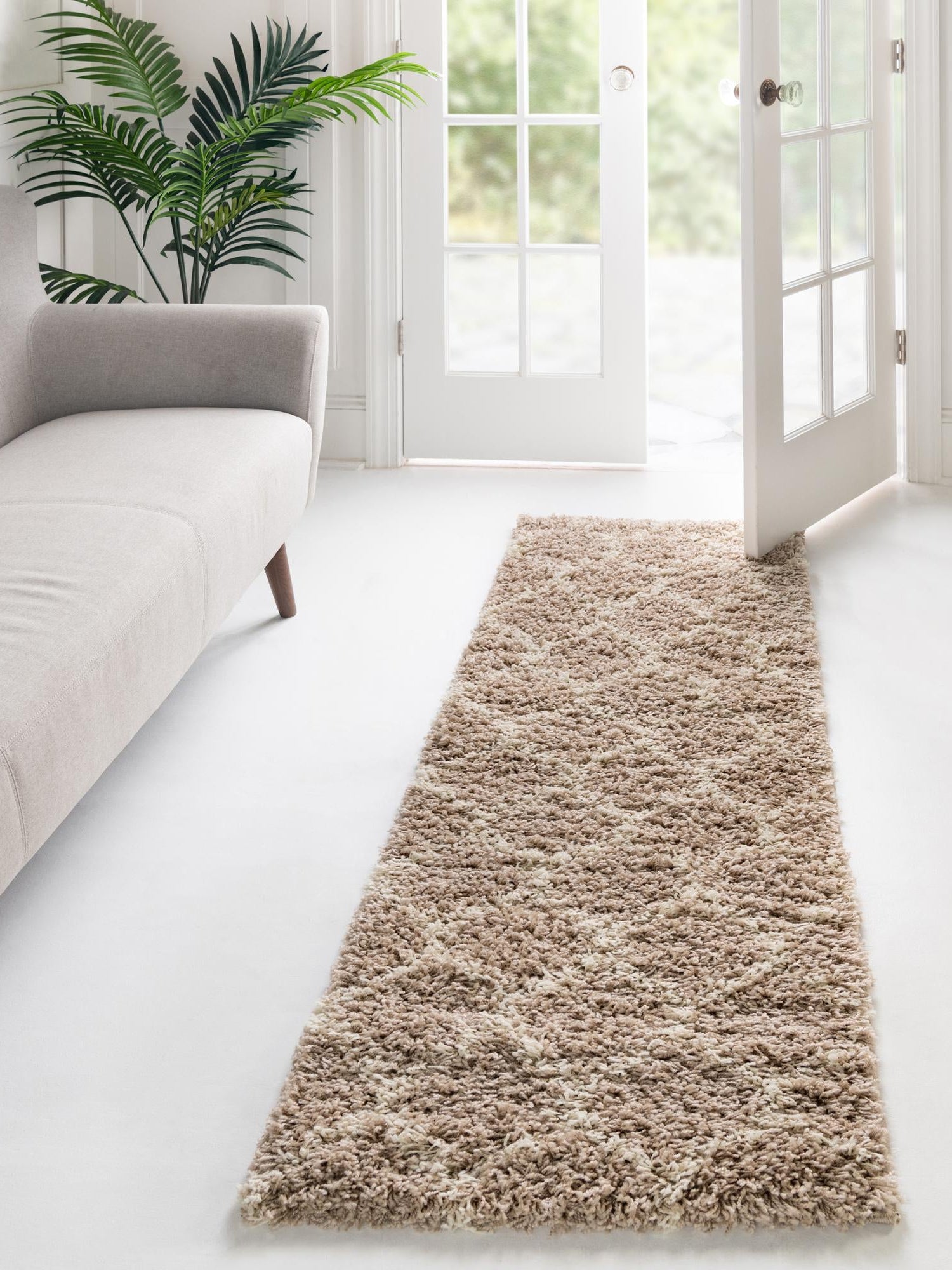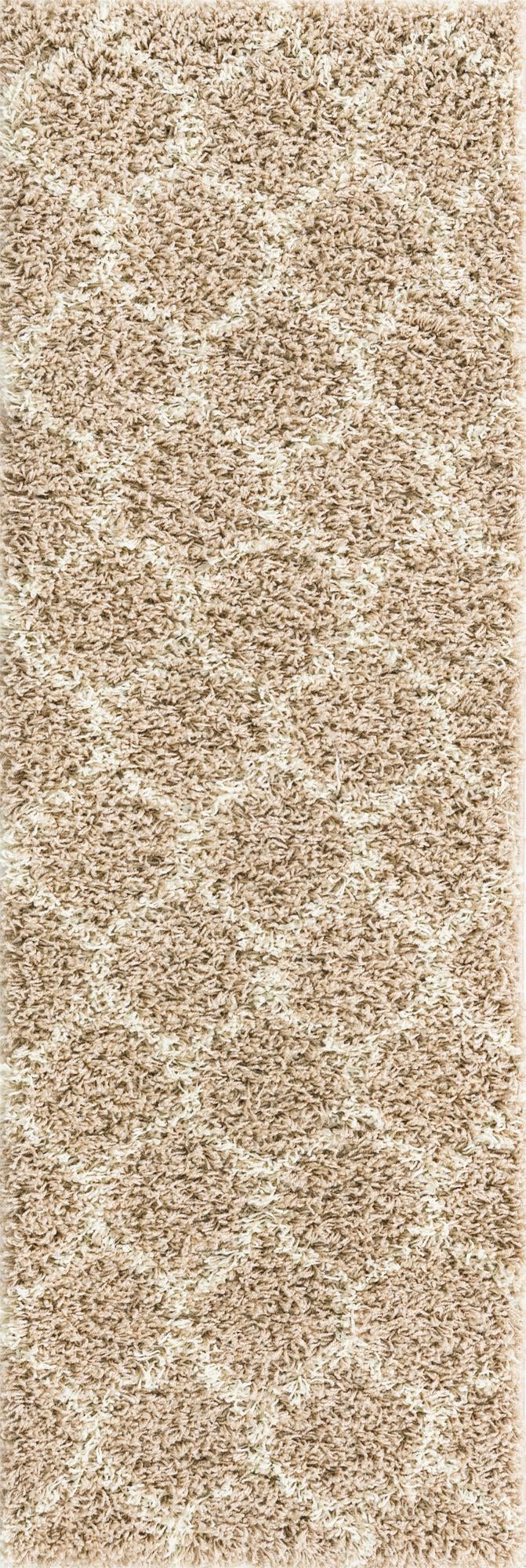 Light Brown 2' x 6' Trellis Shag Runner Area Rug Thick Soft Touch Fluffy & Plush Shaggy Pile