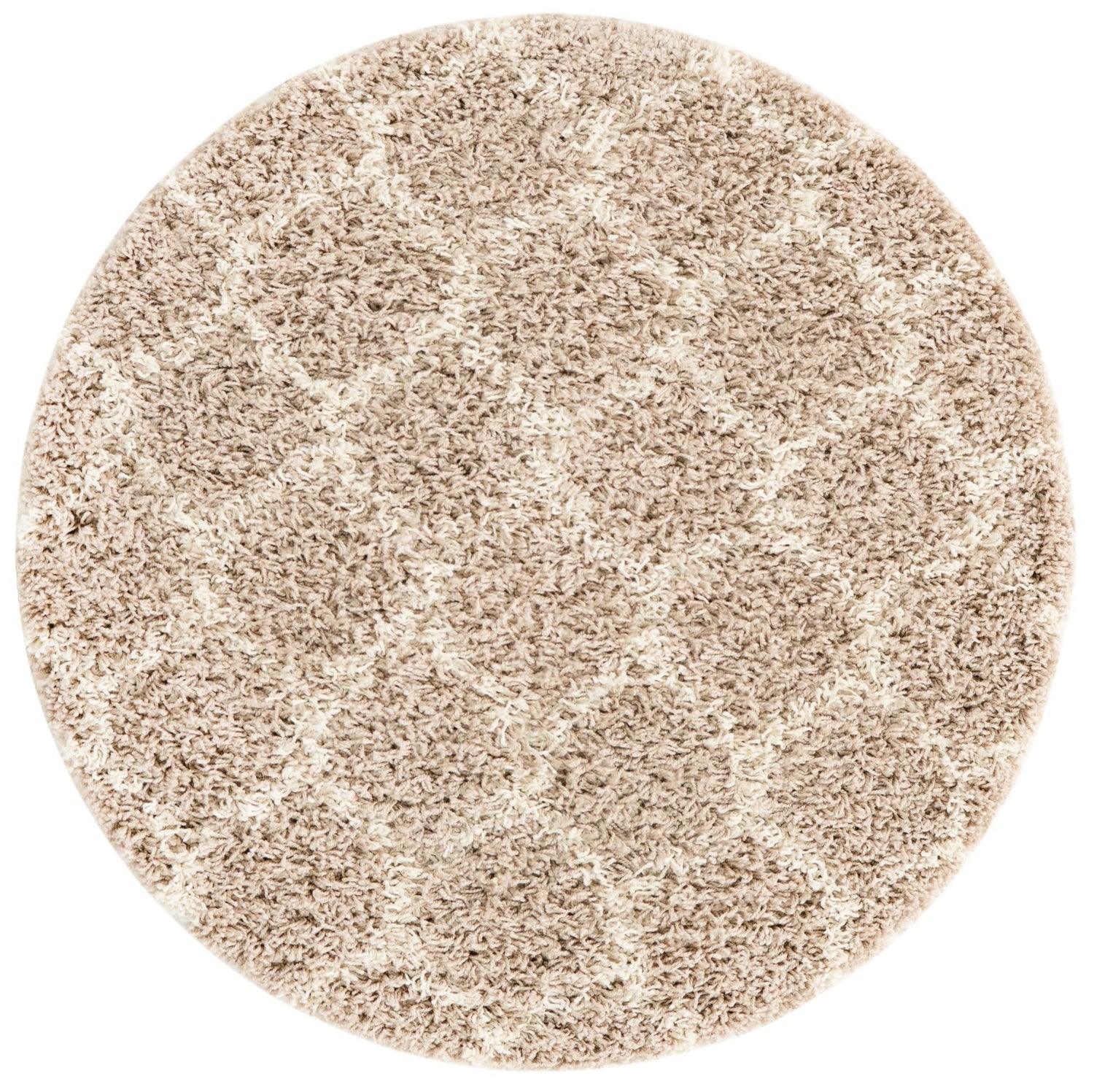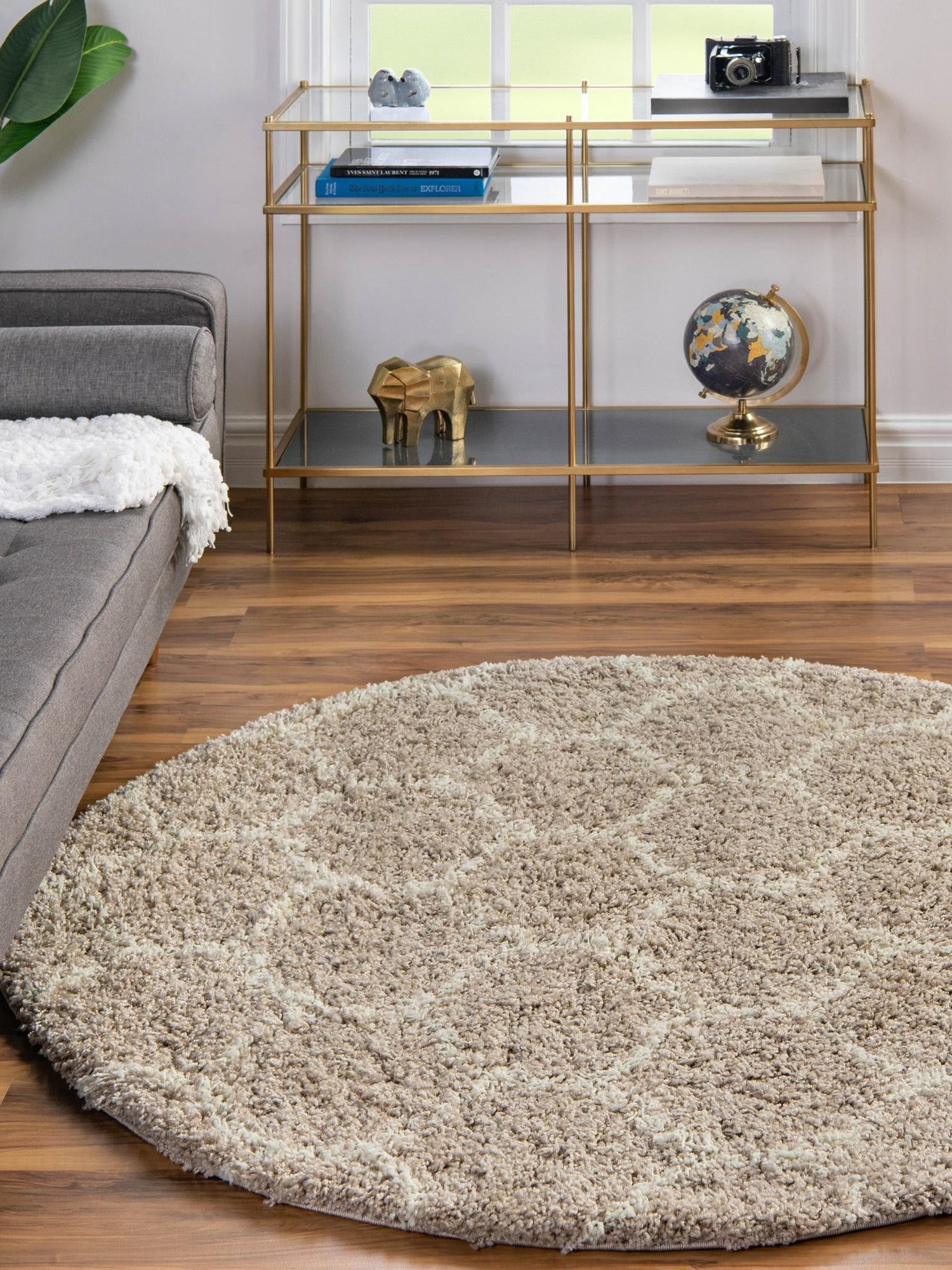 Light Brown 3' 3 x 3' 3 Trellis Shag Round Area Rug Thick S...
