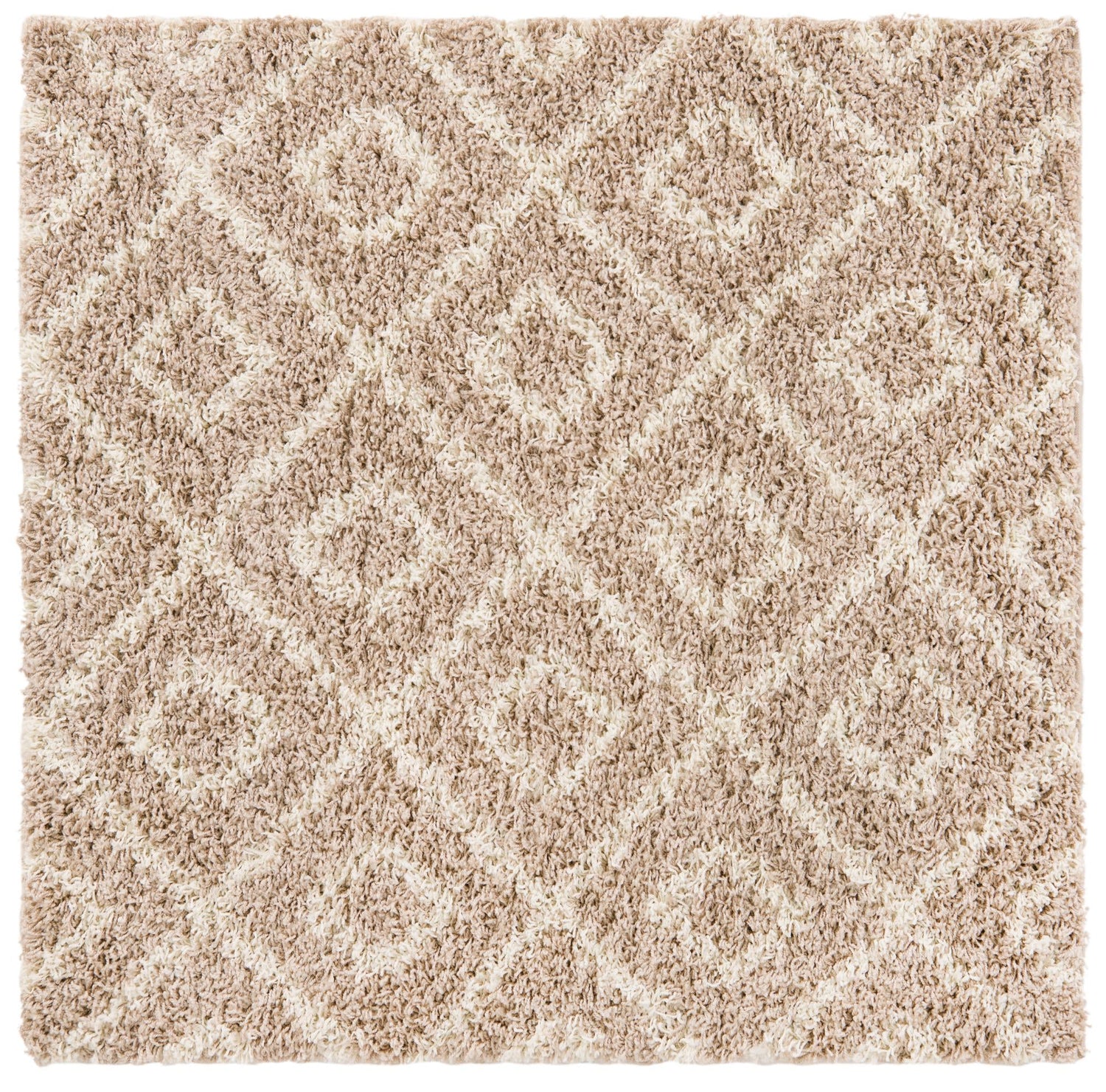 Light Brown 4' x 4' Trellis Shag Square Area Rug Thick Soft Touch Fluffy & Plush Shaggy Pile