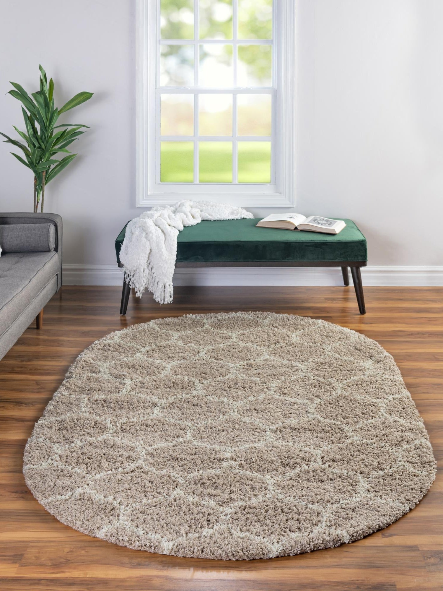 Light Brown 4' x 6' Trellis Shag Oval Area Rug Thick Soft Touch Fluffy & Plush Shaggy Pile