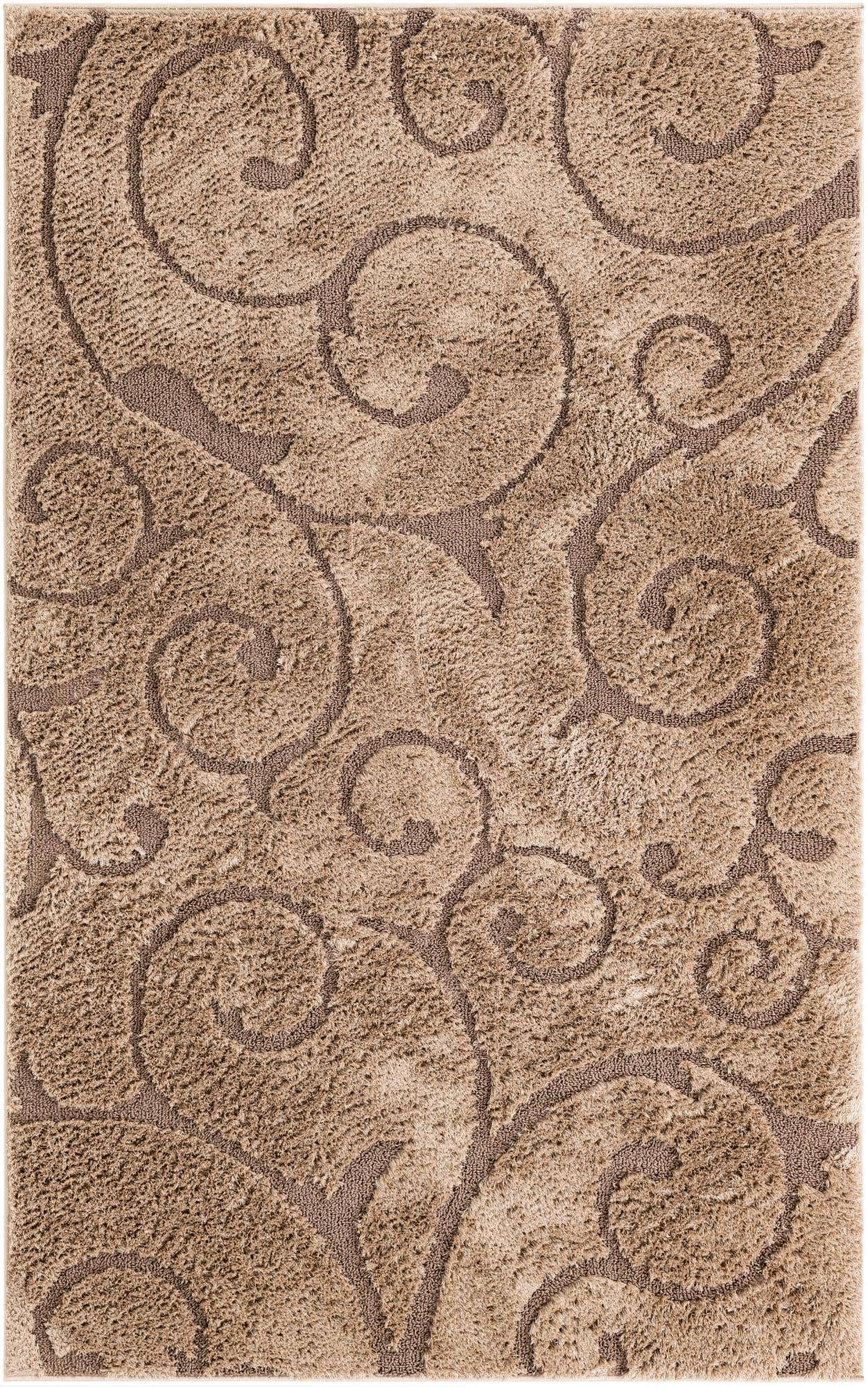 Light Brown 5' 1 x 8' Floral Shag Rectangle Area Rug Thick Soft Touch Fluffy & Plush Shaggy Pile 100% Polyester With Cotton Backing Carpet for Interior Design