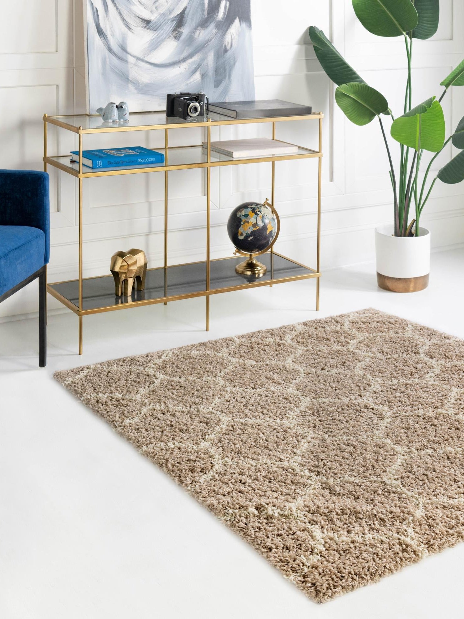 Light Brown 5' 3 x 5' 3 Trellis Shag Square Area Rug Thick Soft Touch Fluffy & Plush Shaggy Pile