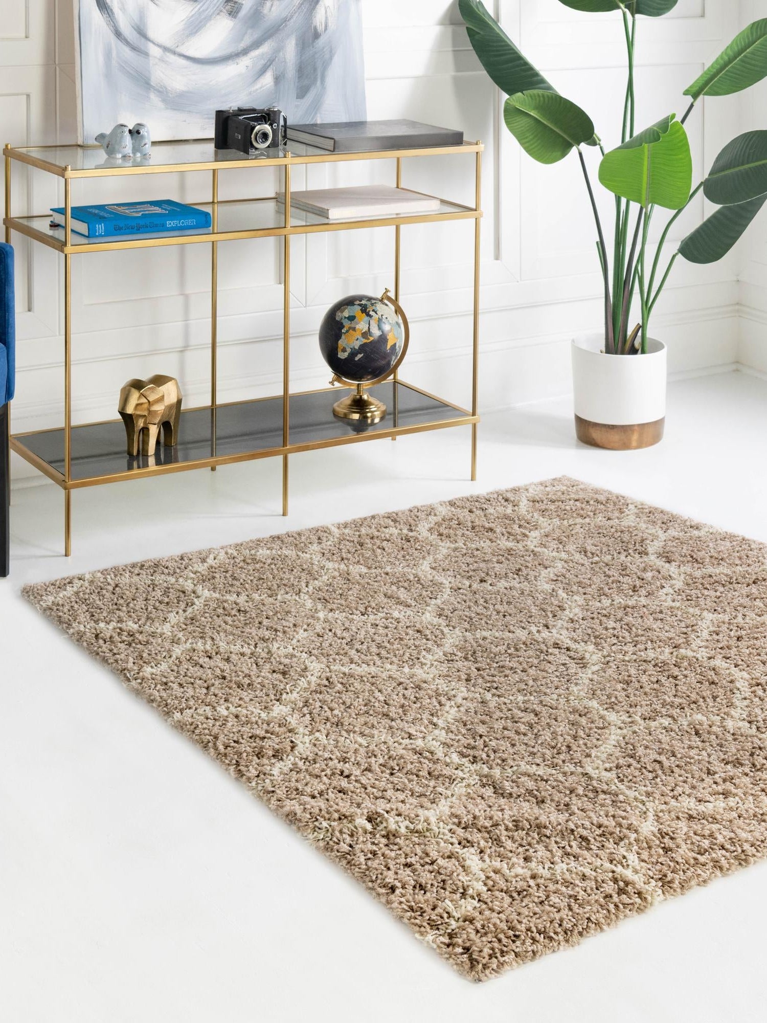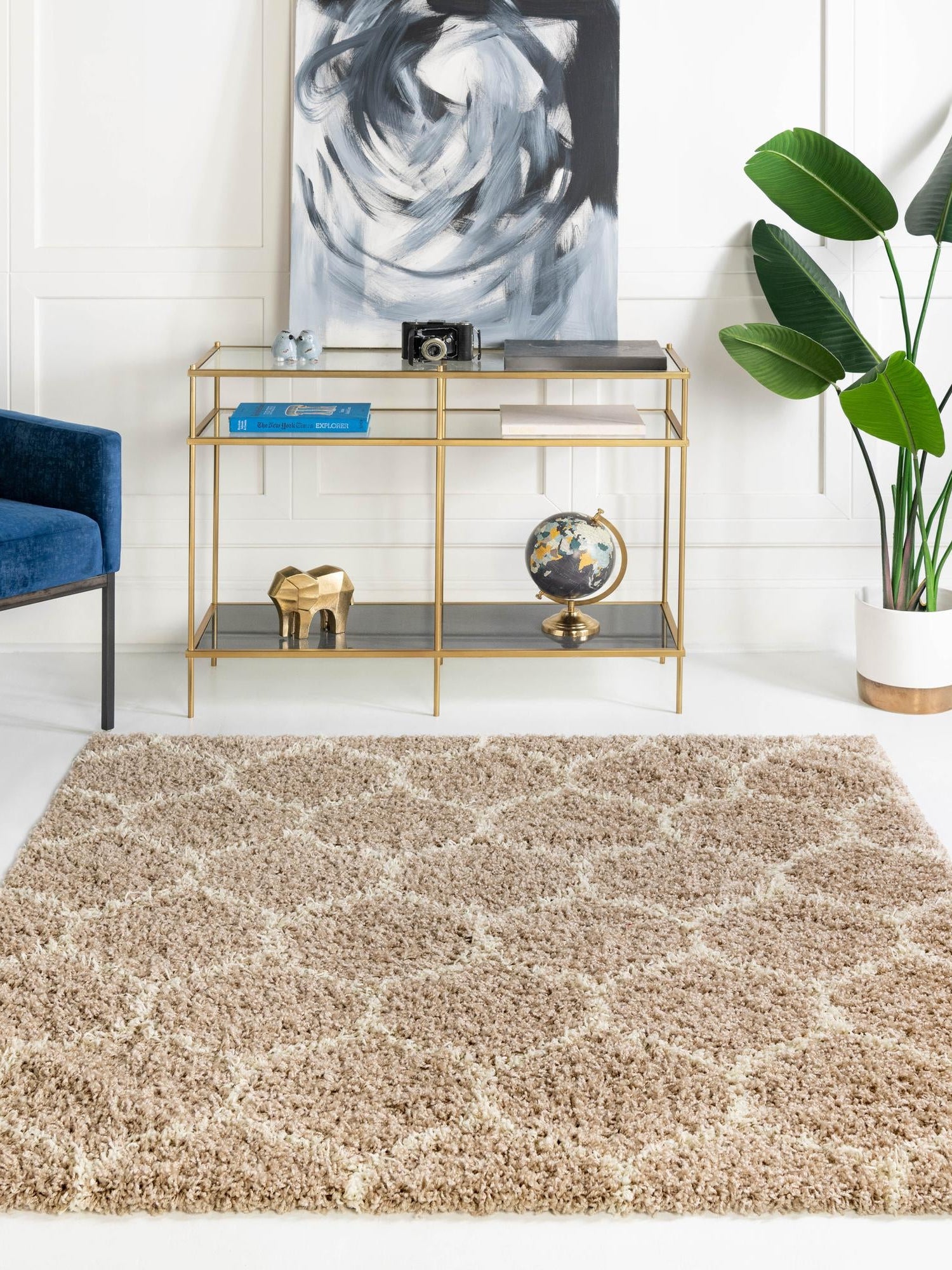 Light Brown 5' 3 x 5' 3 Trellis Shag Square Area Rug Thick ...