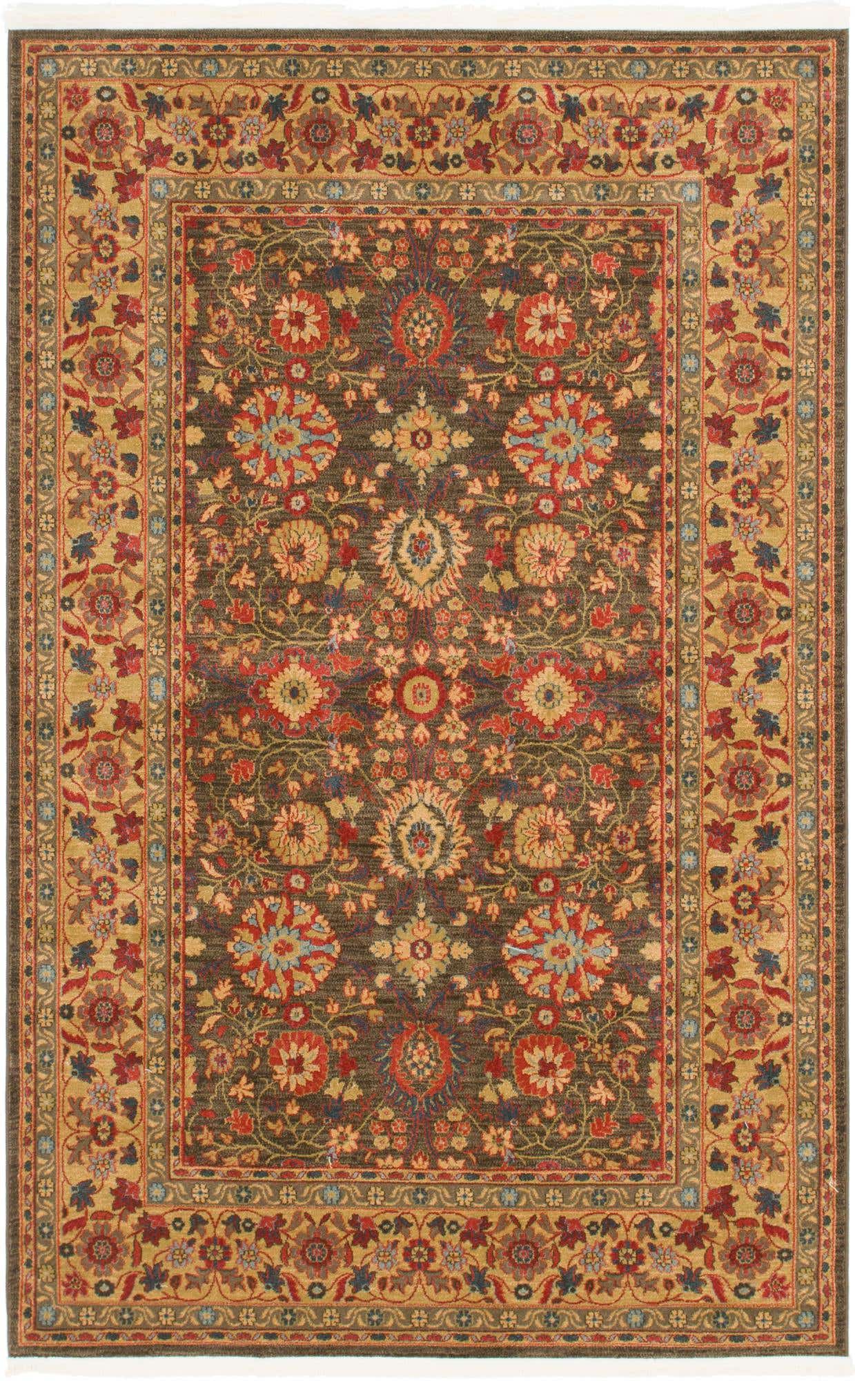 Light Brown 6' 1 x 9' Edinburgh Rectangle Area Rug 100% Polypropylene Easy Clean With Cotton Backing Traditional Classic Design Carpet for Living, Dining Room, Office