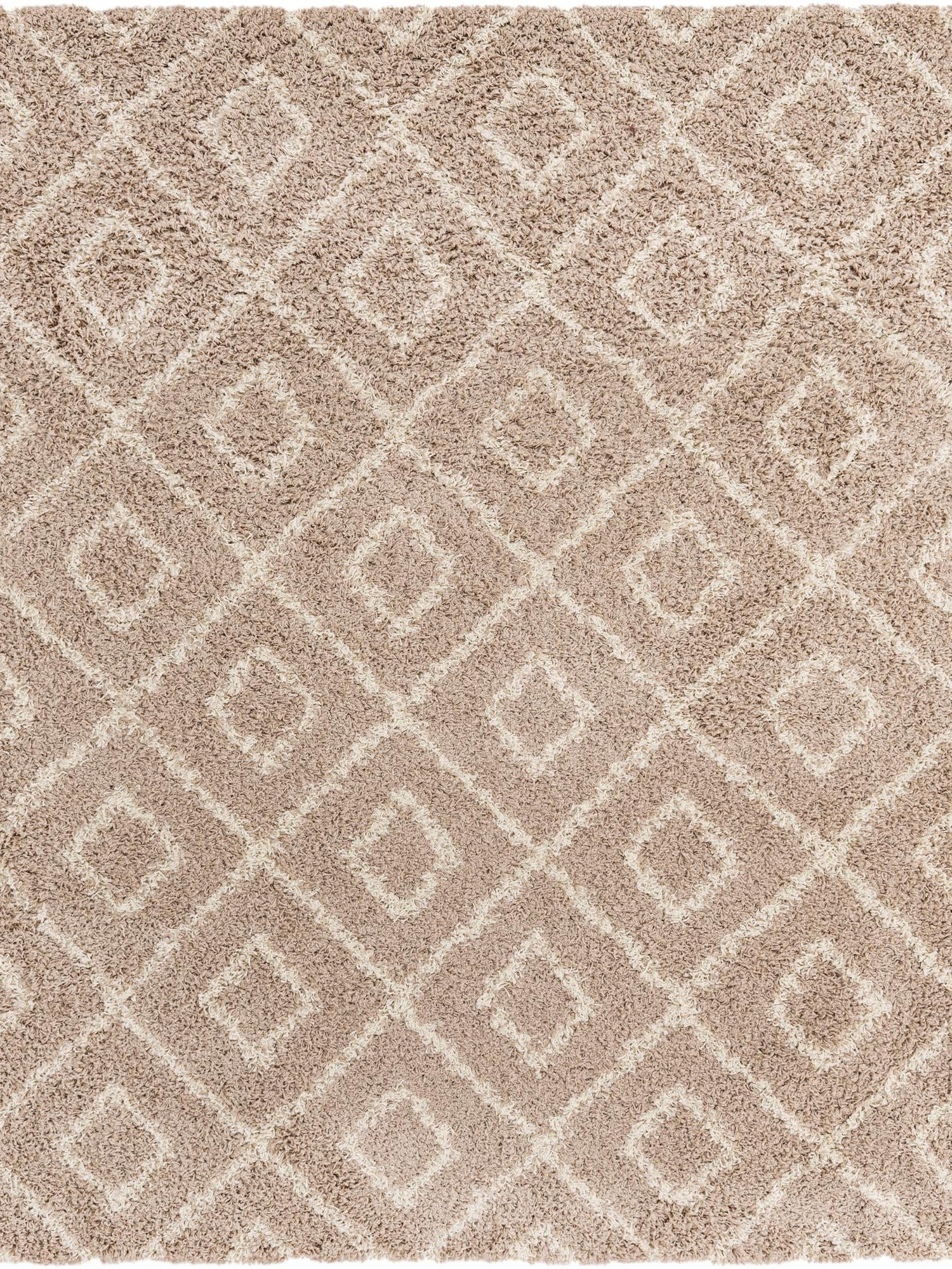 Light Brown 7' 10 x 7' 10 Trellis Shag Square Area Rug Thick Soft Touch Fluffy & Plush Shaggy Pile