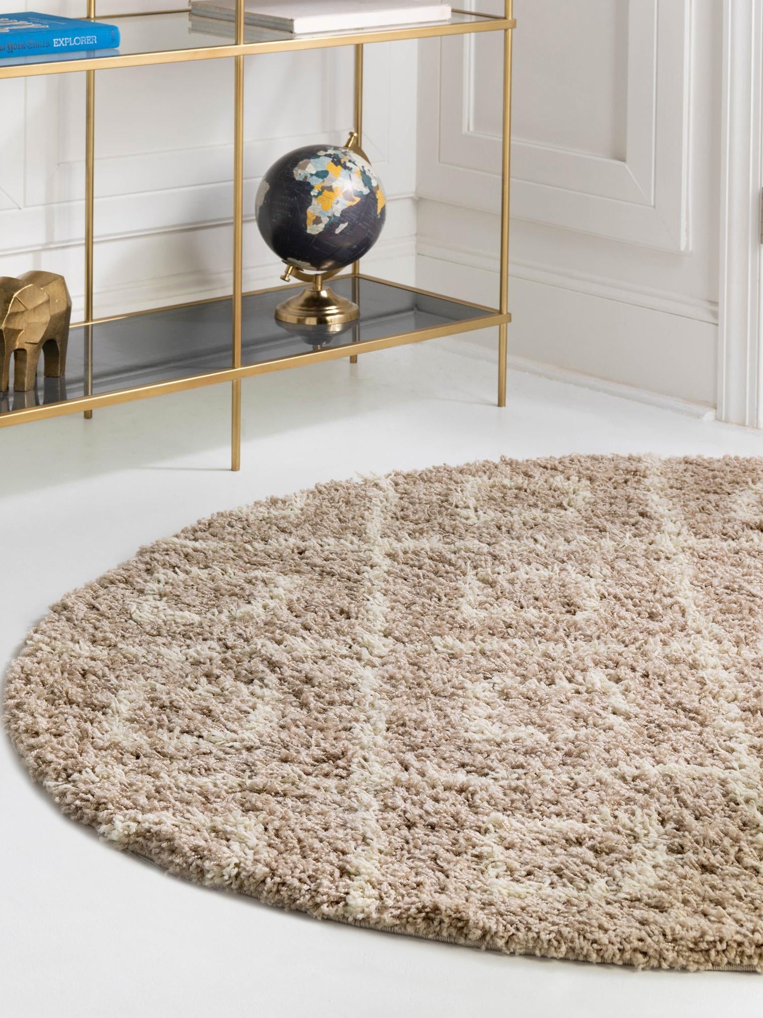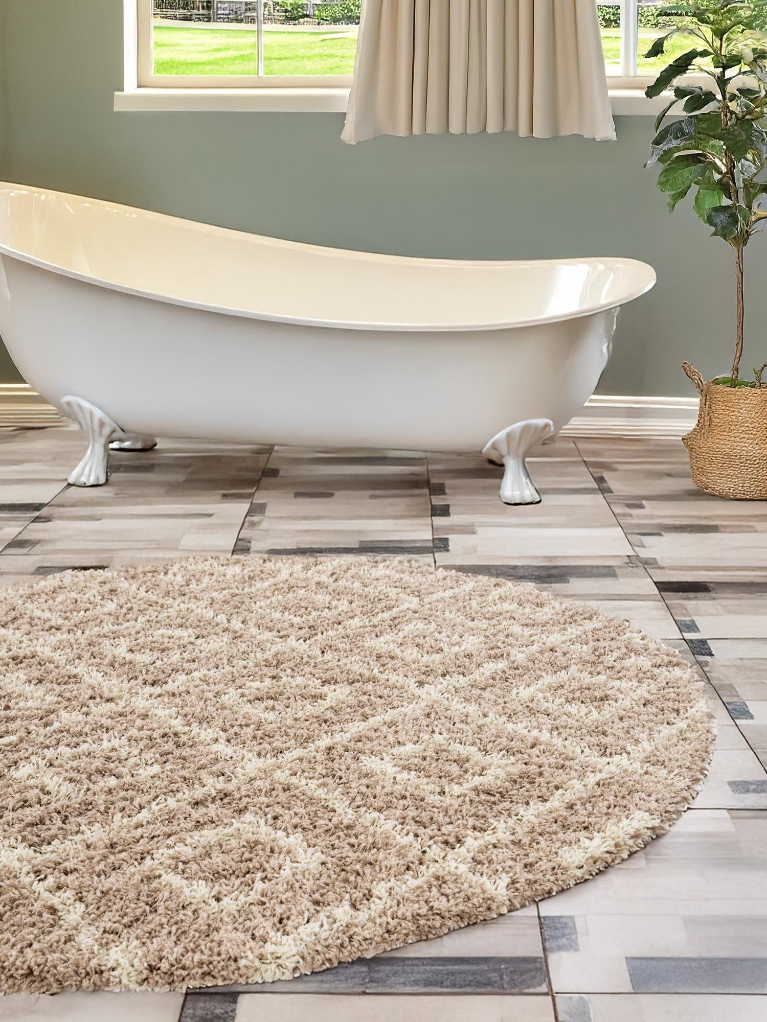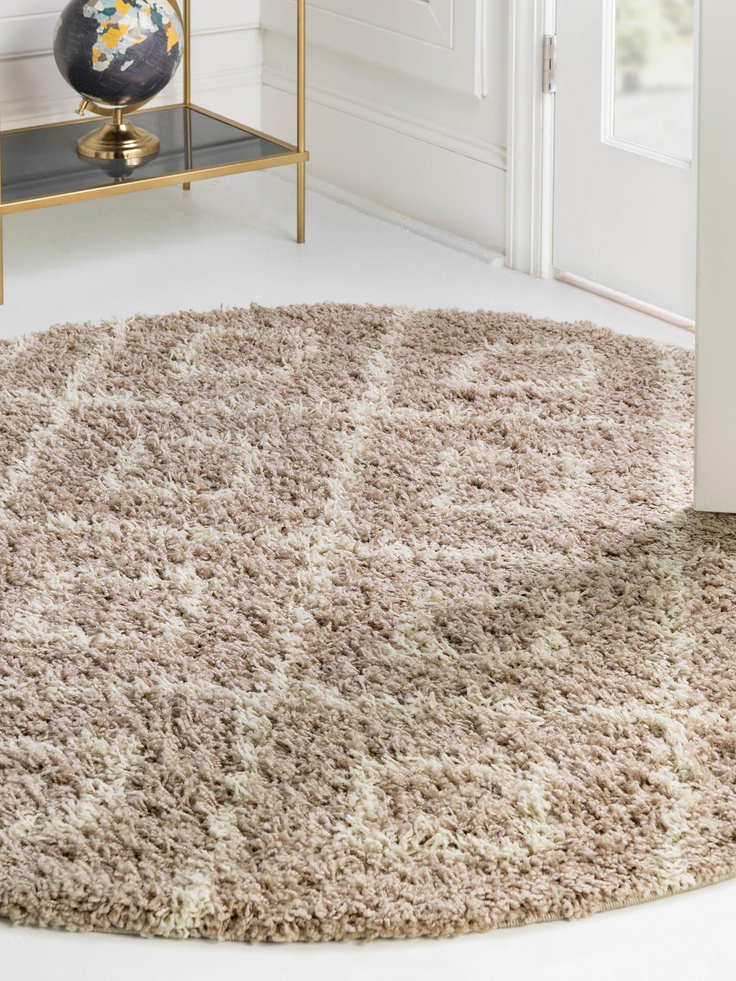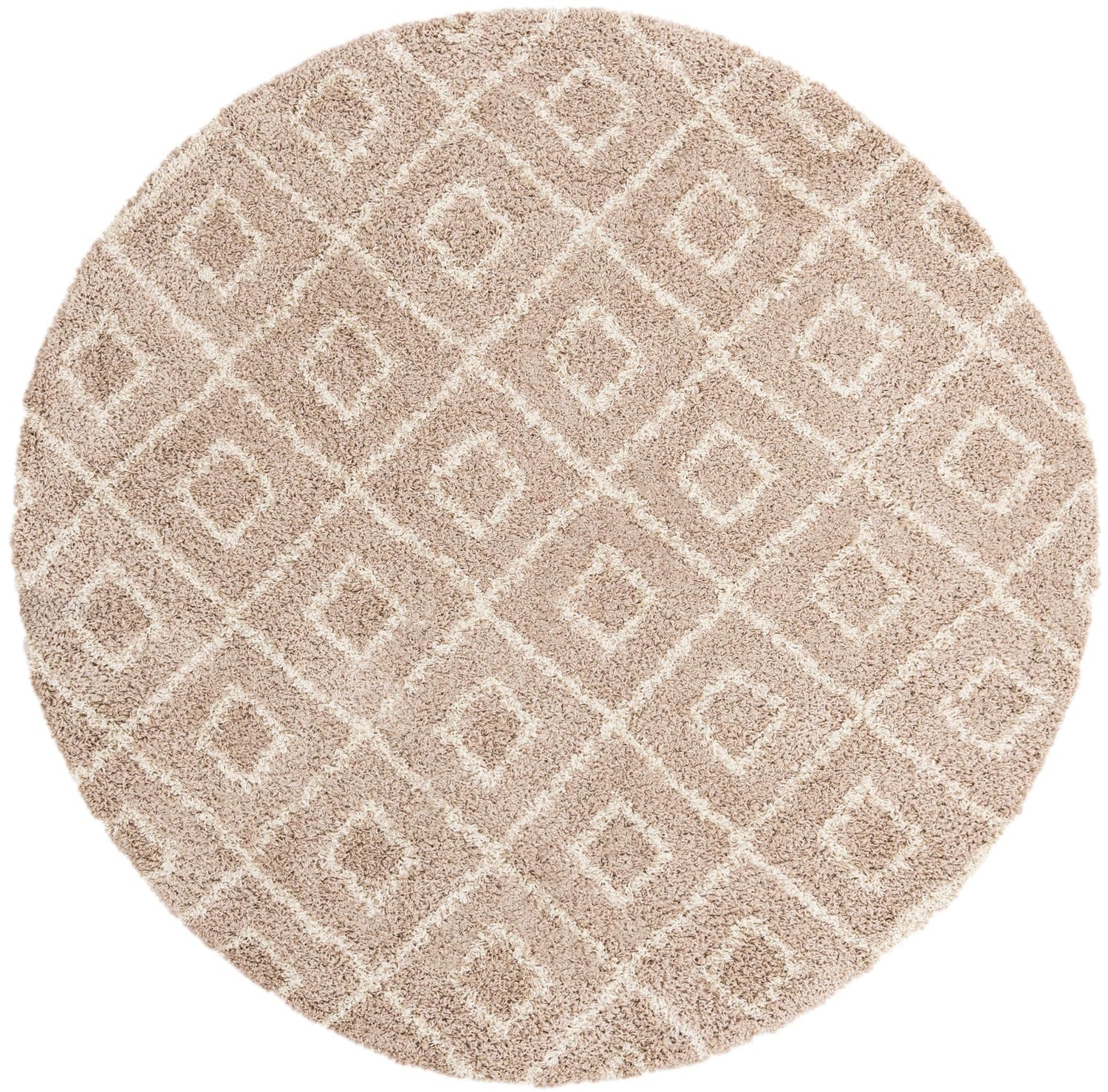Light Brown 7' 10 x 7' 10 Trellis Shag Round Area Rug Thick Soft Touch Fluffy & Plush Shaggy Pile
