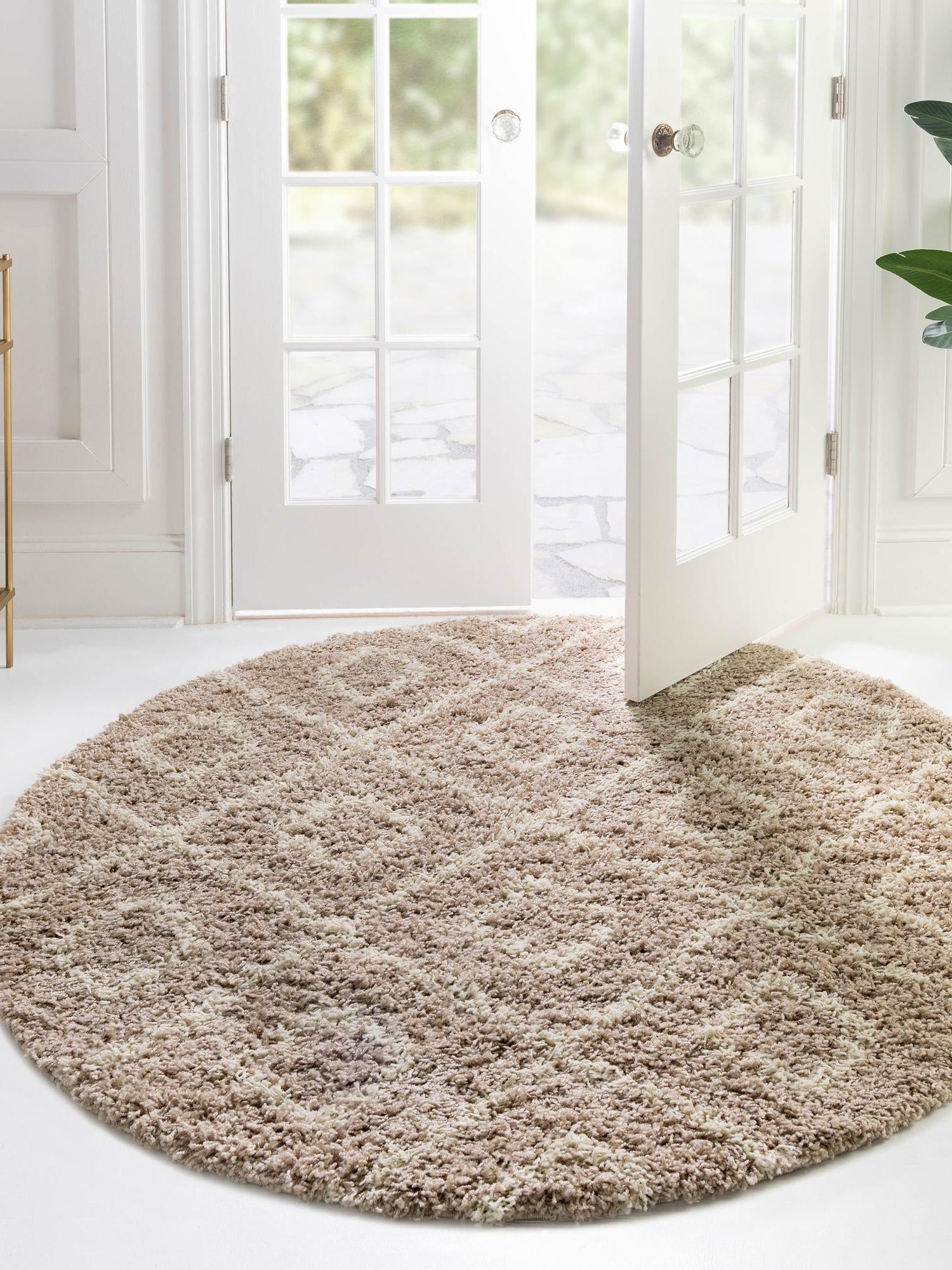 Light Brown 7' 10 x 7' 10 Trellis Shag Round Area Rug Thick...