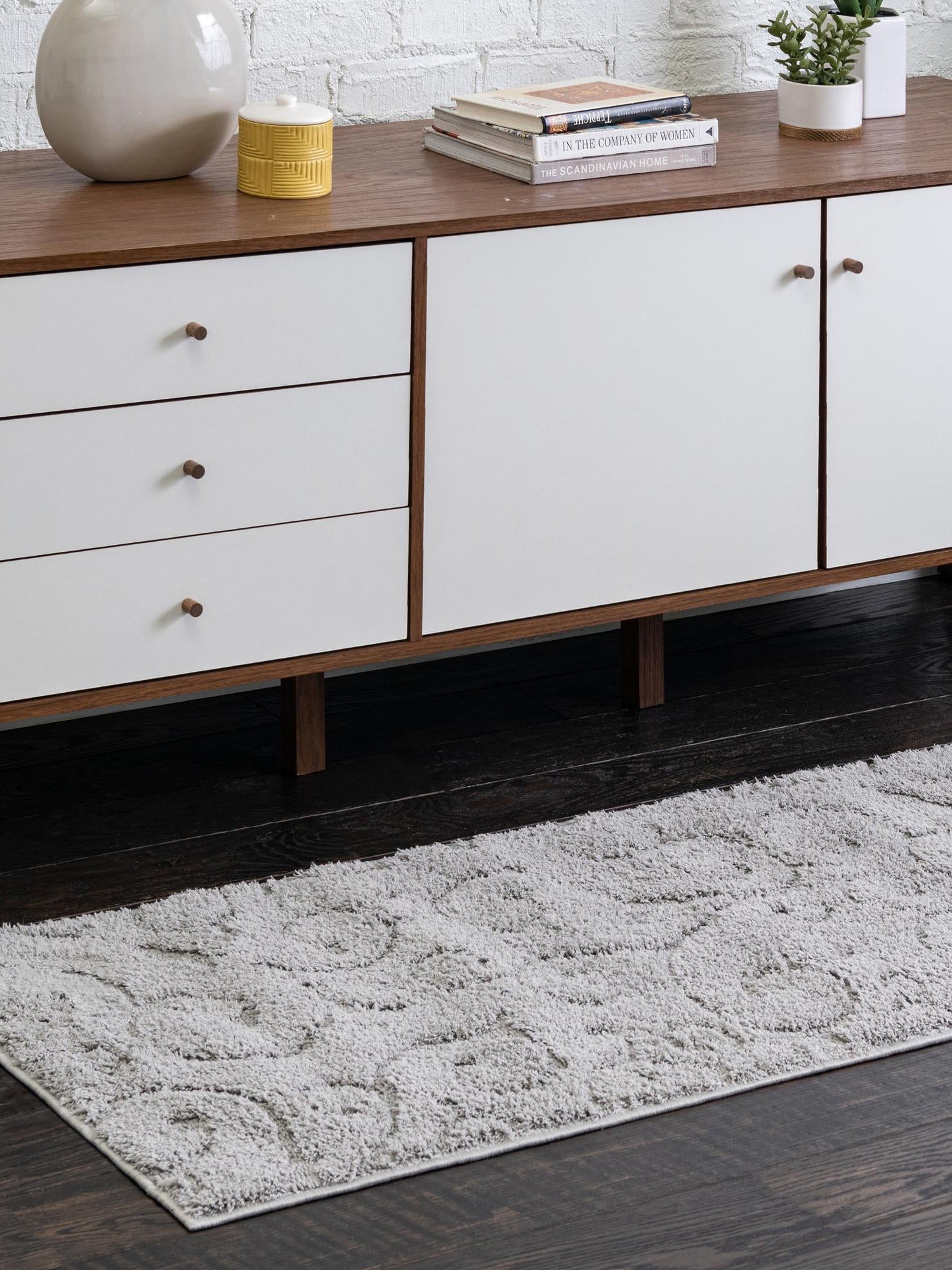 Light Gray 2' x 6' 9 Floral Shag Runner Area Rug Thick Soft Touch Fluffy & Plush Shaggy Pile 100% Polyester With Cotton Backing Carpet for Interior Design