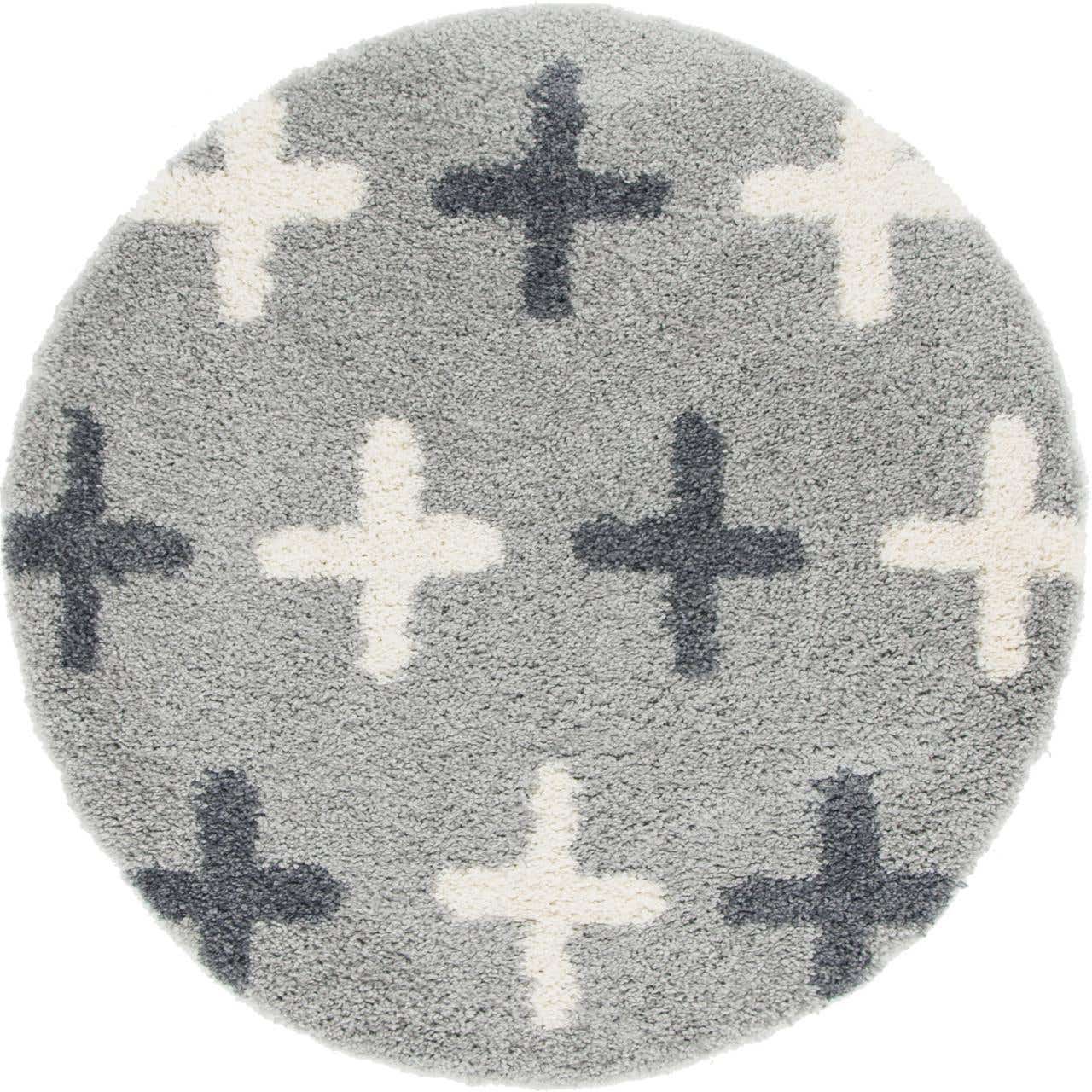 Light Gray 3' 3 x 3' 3 Hygge Shag Round Area Rug Thick Soft...