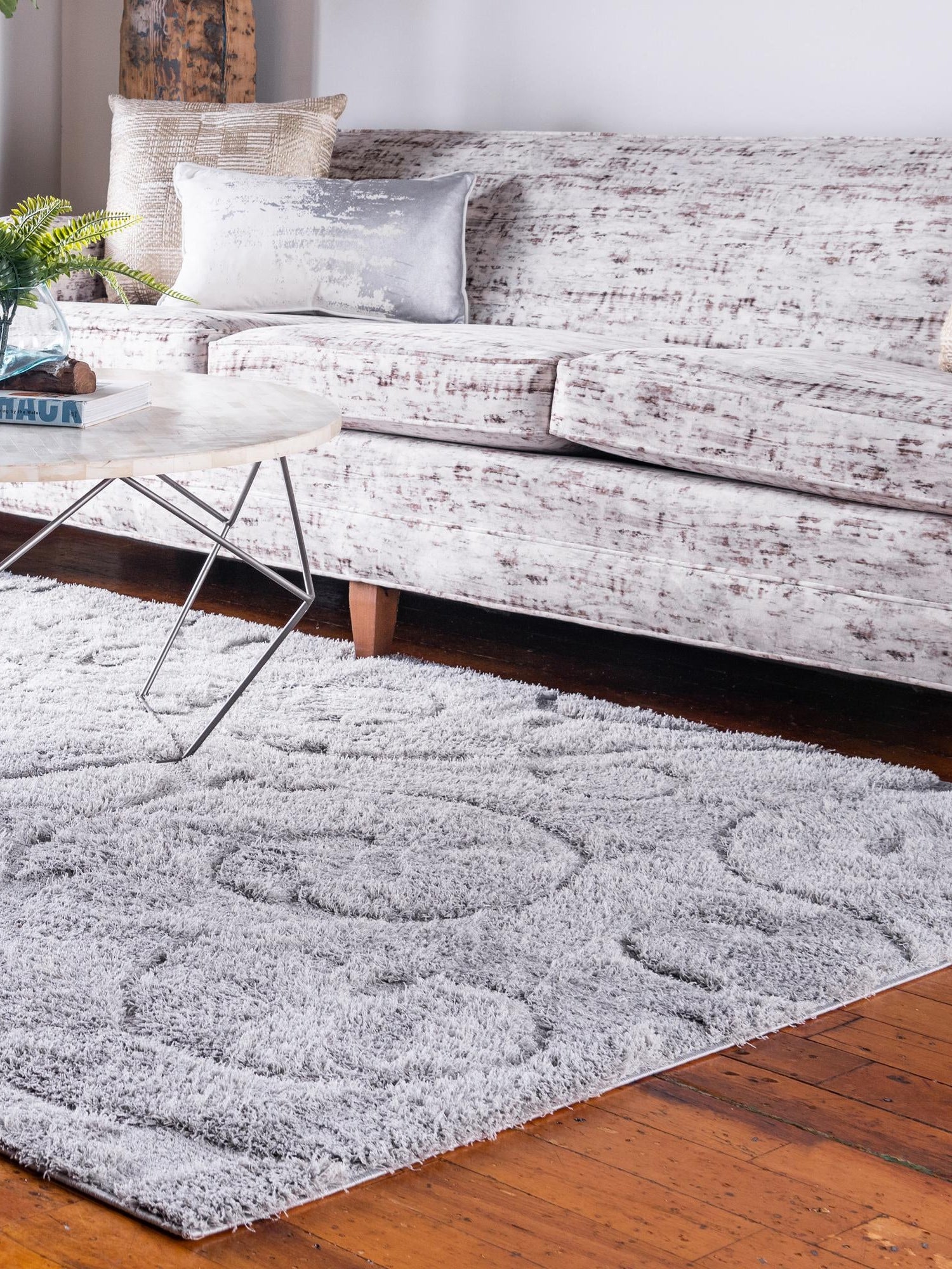 Light Gray 4' 1 x 6' 1 Floral Shag Rectangle Area Rug Thick Soft Touch Fluffy & Plush Shaggy Pile 100% Polyester With Cotton Backing Carpet for Interior Design