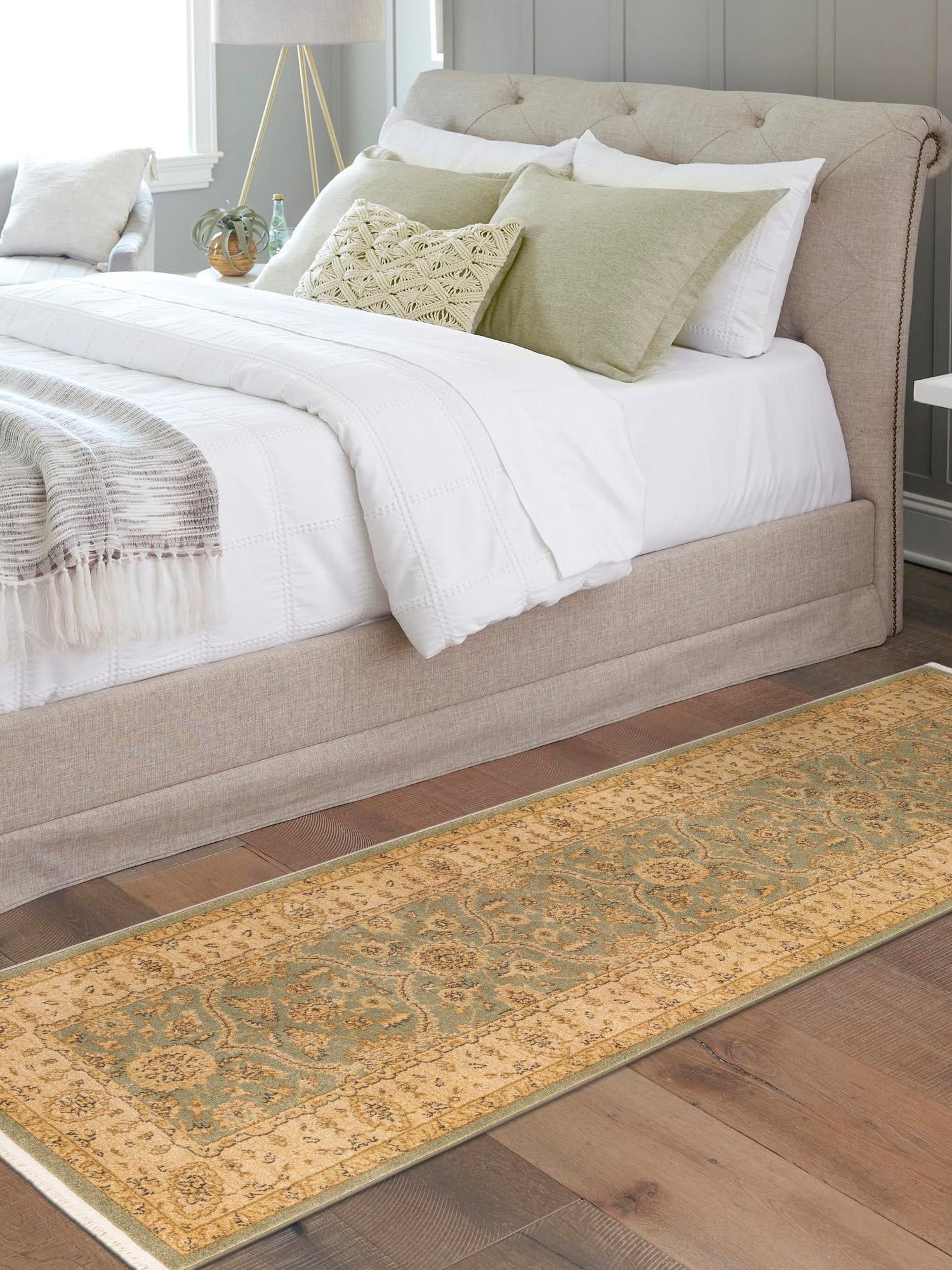 Light Green 2' 7 x 10' Edinburgh Runner Area Rug 100% Polypropylene Easy Clean With Cotton Backing Traditional Classic Design Carpet for Living, Dining Room, Office