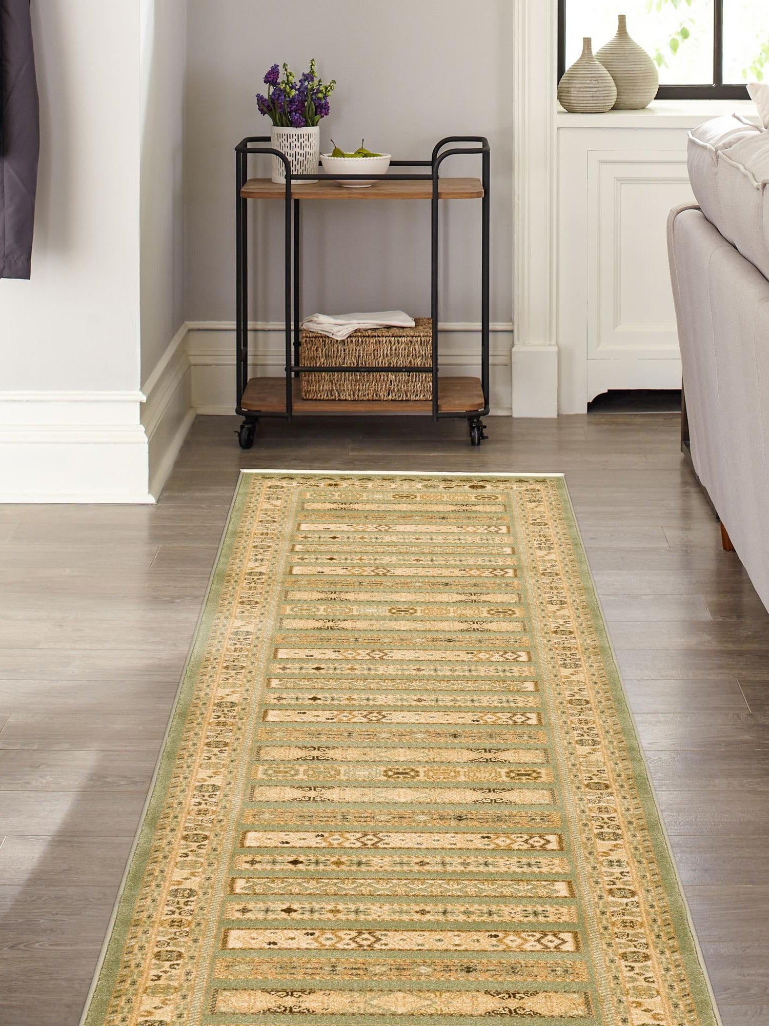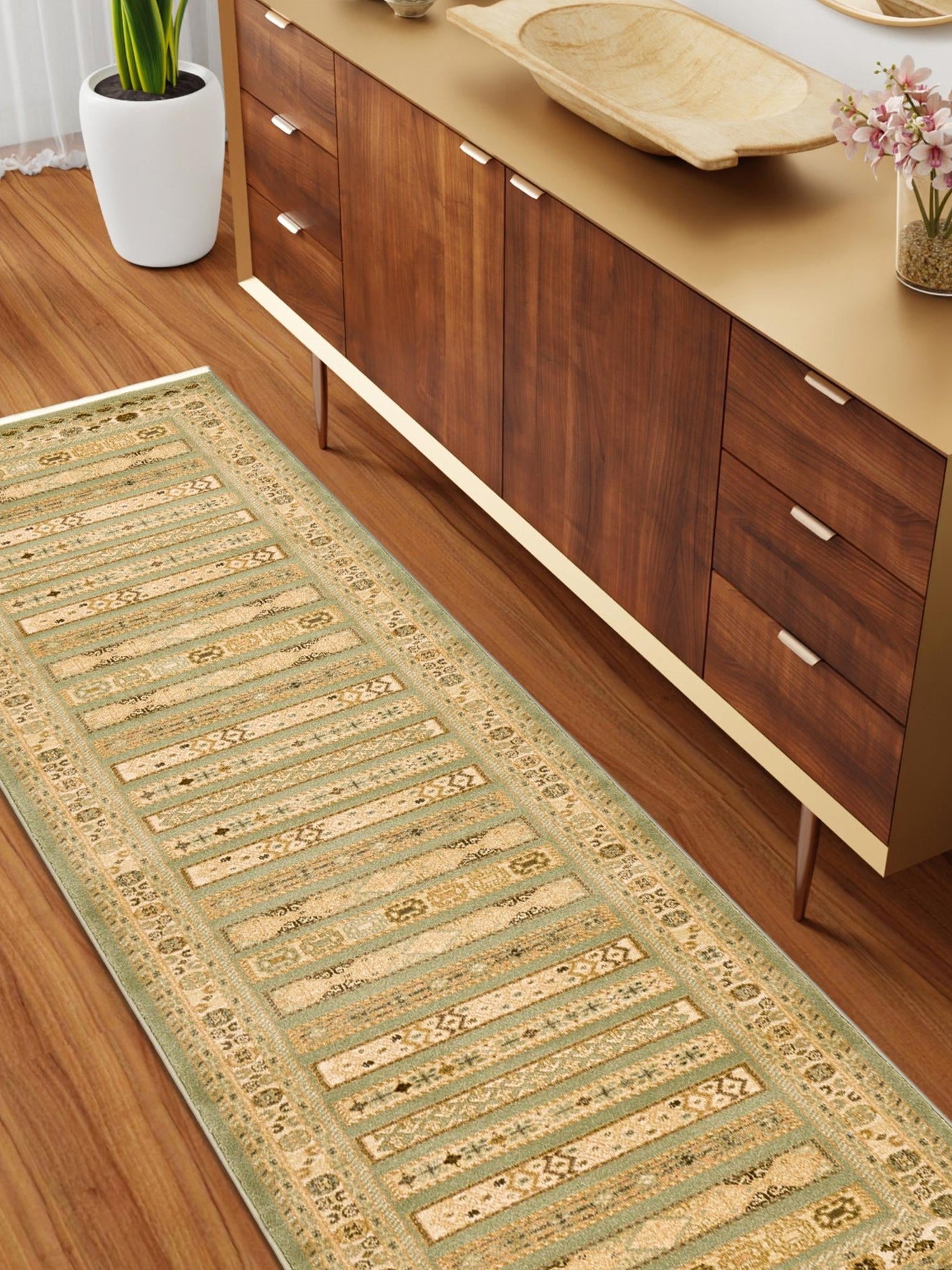 Light Green 2' 7 x 10' Fars Runner Area Rug 100% Polypropylene Unique Traditional Carpet for Classical Living, Dining Room & Office Spaces