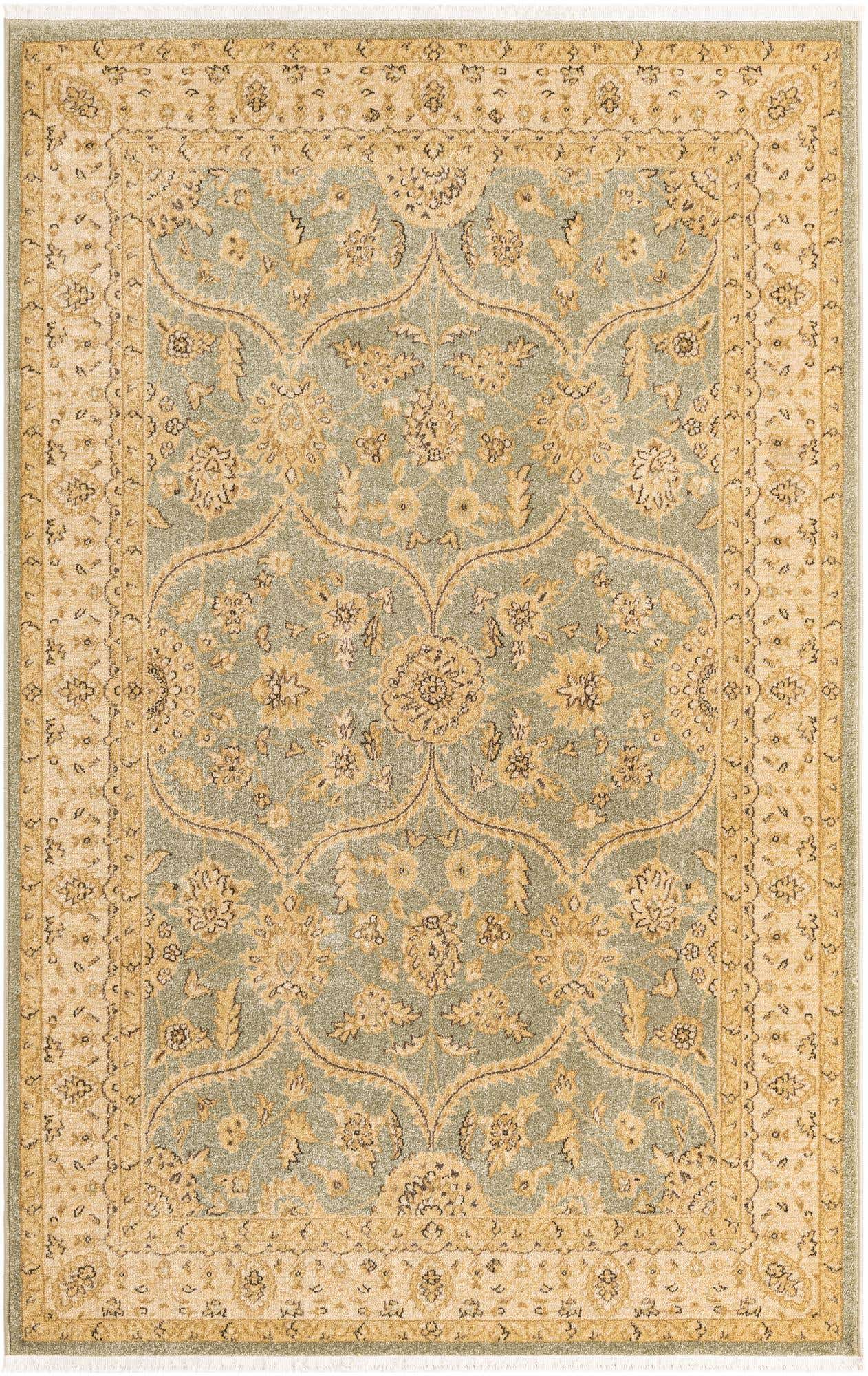 Light Green 5' 1 x 8' Edinburgh Rectangle Area Rug 100% Polypropylene Easy Clean With Cotton Backing Traditional Classic Design Carpet for Living, Dining Room, Office