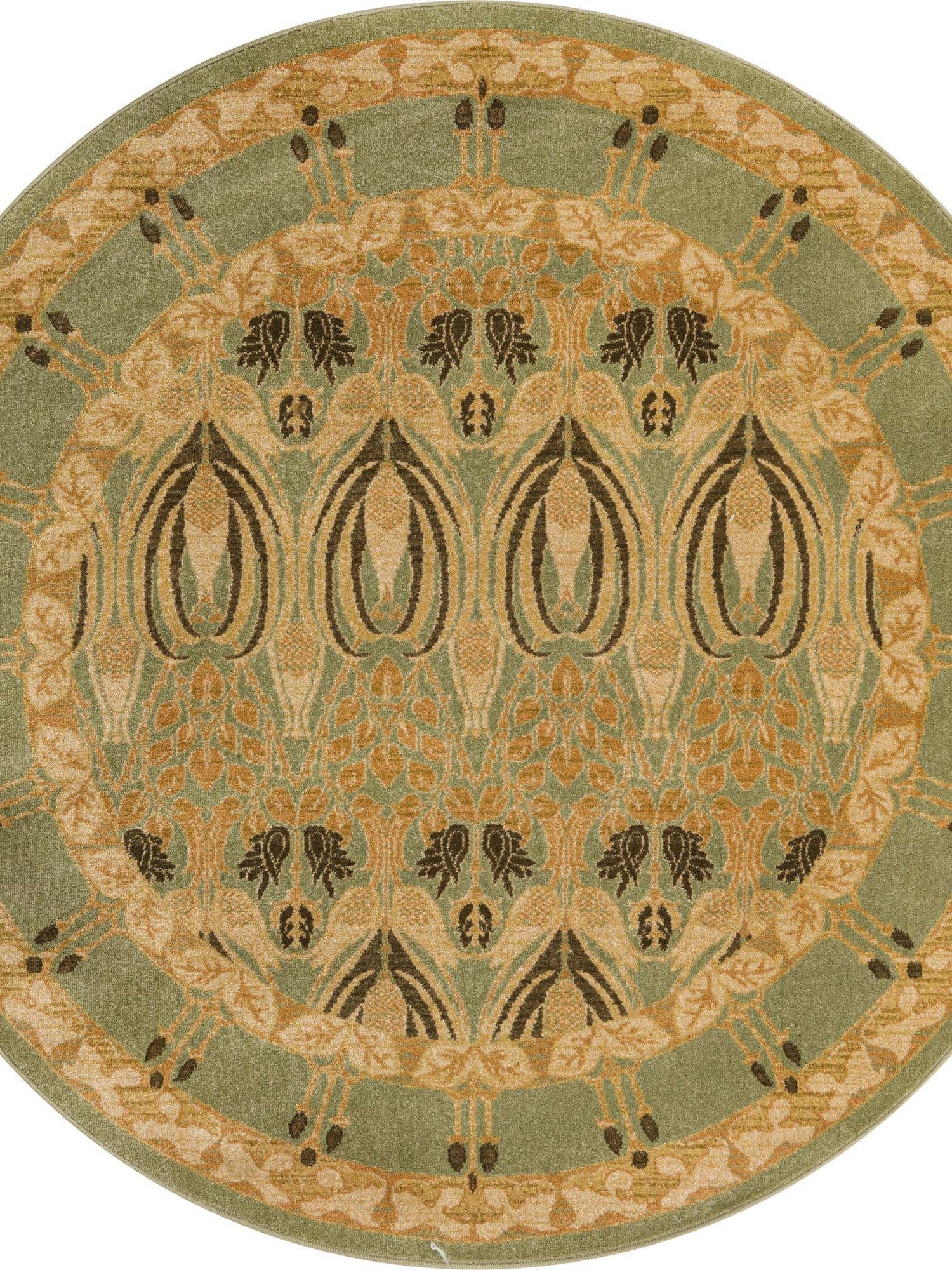 Light Green 6' 1 x 6' 1 Edinburgh Round Area Rug 100% Polypropylene Easy Clean With Cotton Backing Traditional Classic Design Carpet for Living, Dining Room, Office
