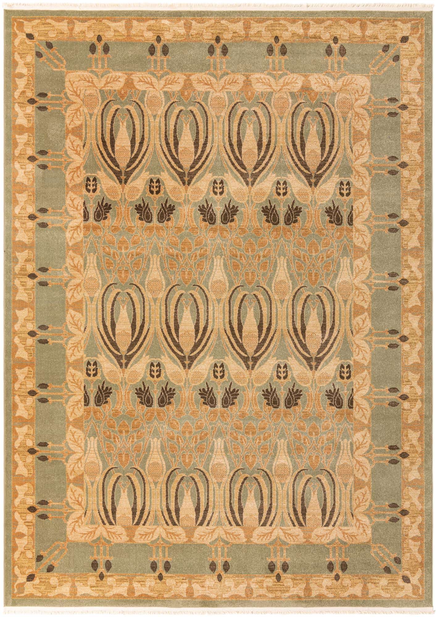 Light Green 8' x 11' Edinburgh Rectangle Area Rug 100% Polypropylene Easy Clean With Cotton Backing Traditional Classic Design Carpet for Living, Dining Room, Office