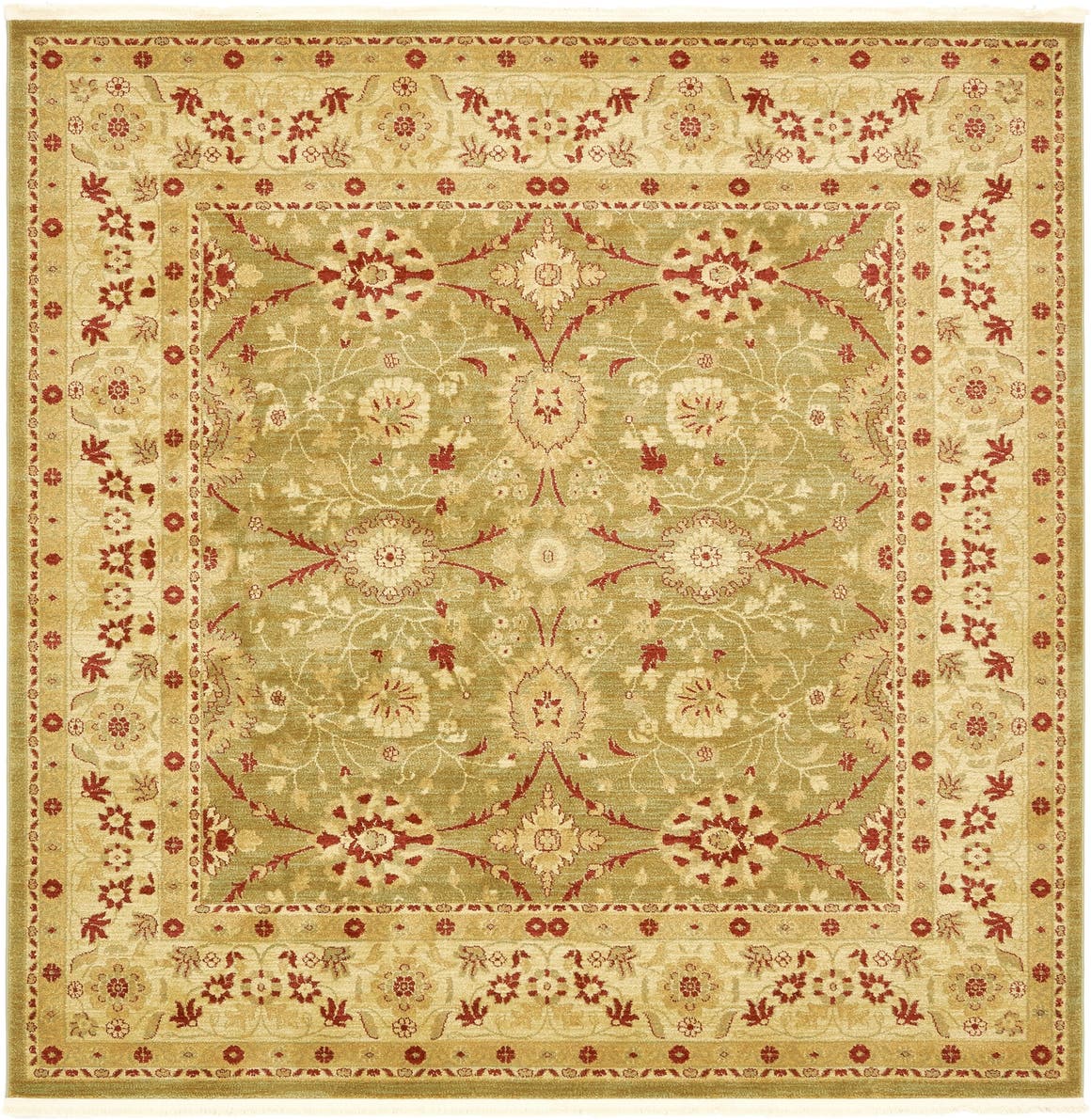 Light Green 8' x 8' Edinburgh Square Area Rug 100% Polypropylene Easy Clean With Cotton Backing Traditional Classic Design Carpet for Living, Dining Room, Office