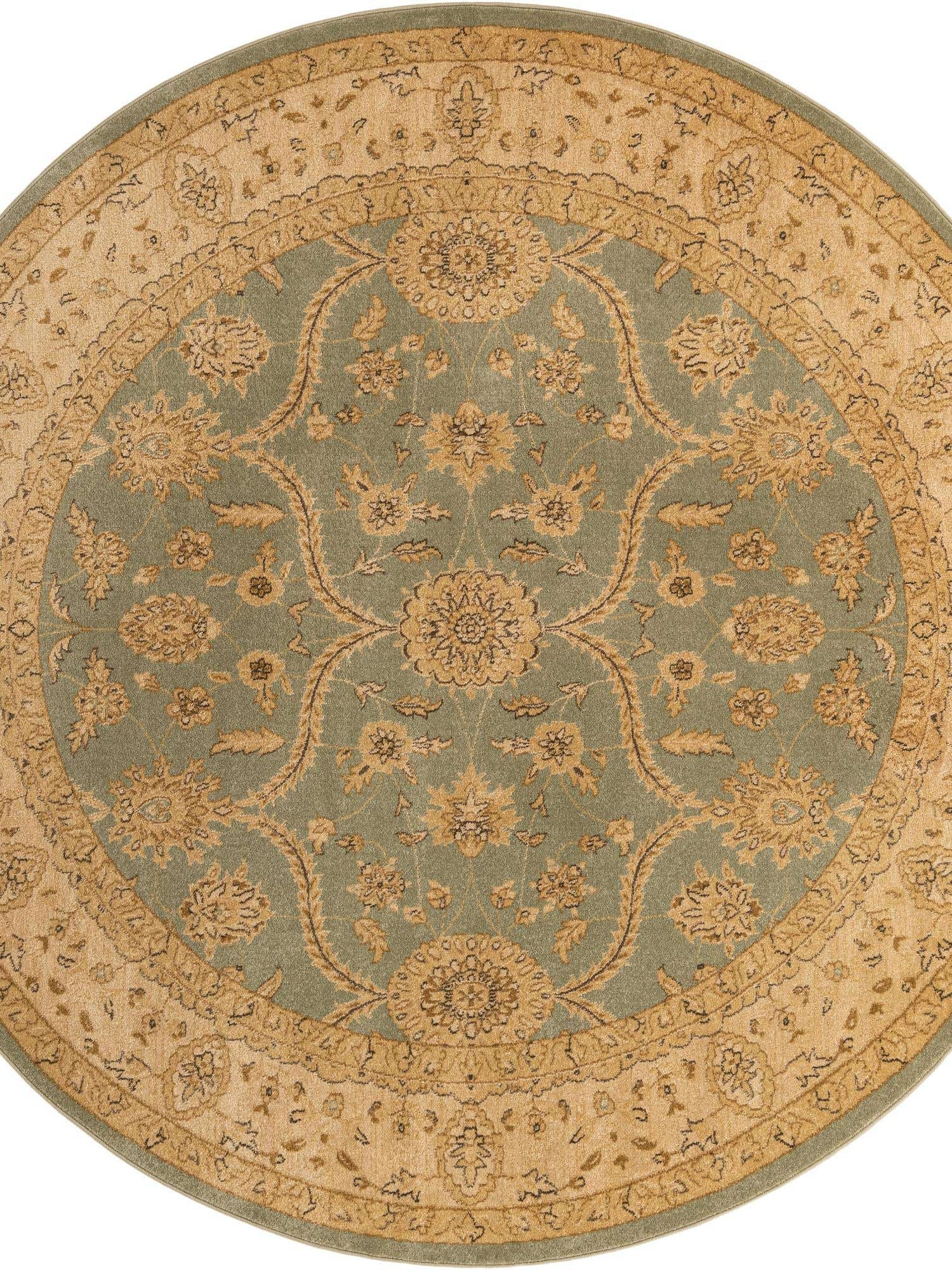 Light Green 8' x 8' Edinburgh Round Area Rug 100% Polypropylene Easy Clean With Cotton Backing Traditional Classic Design Carpet for Living, Dining Room, Office