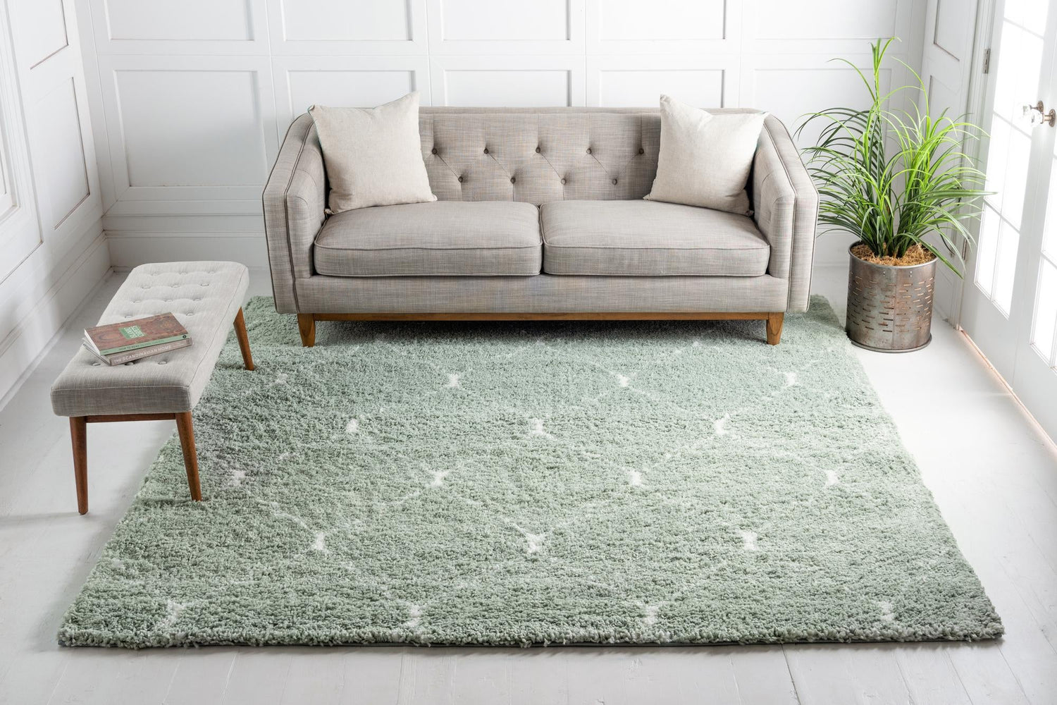 Light Green 8' x 8' Rabat Shag Square Area Rug Thick Soft Touch Fluffy & Plush Shaggy Pile