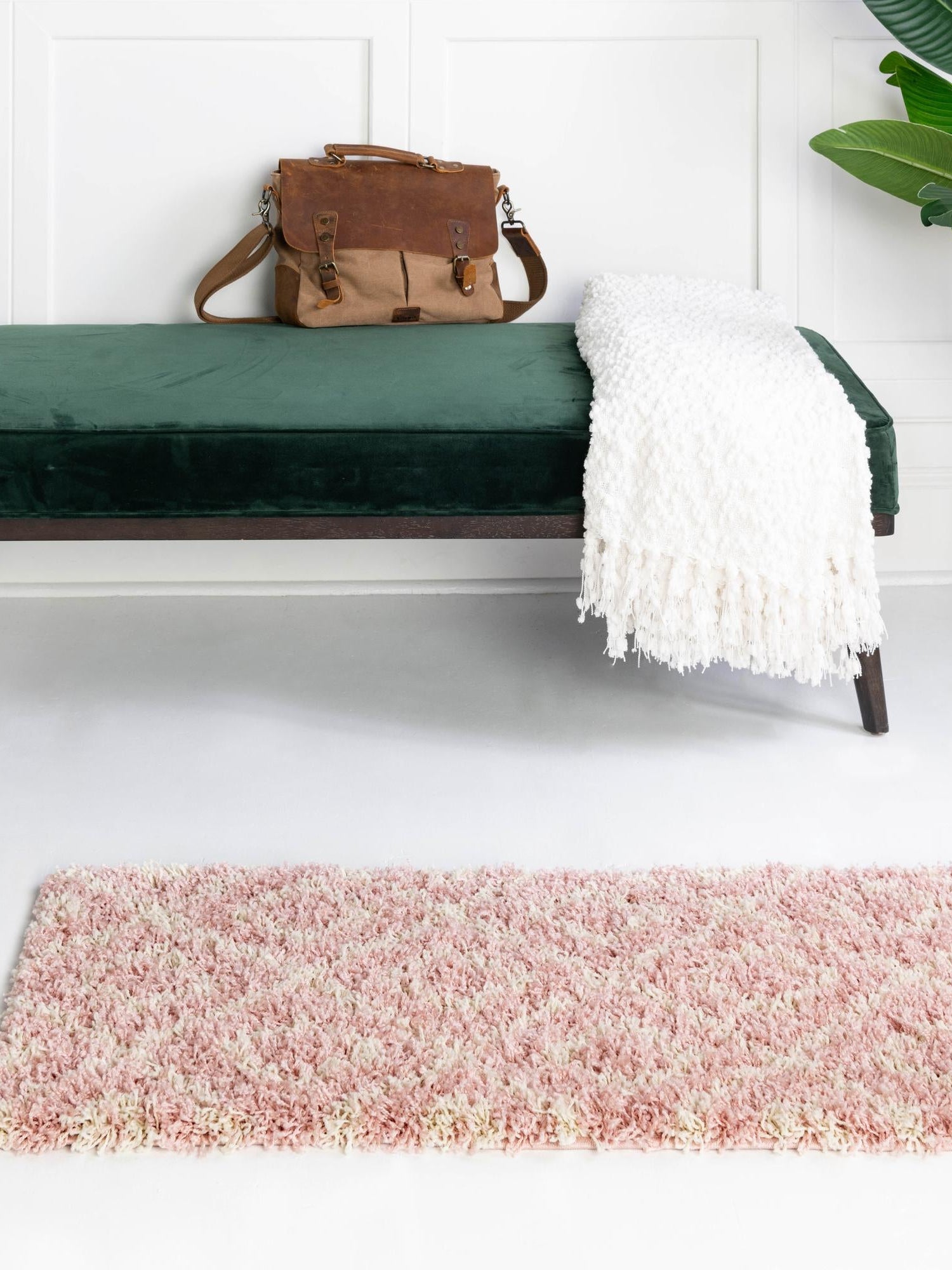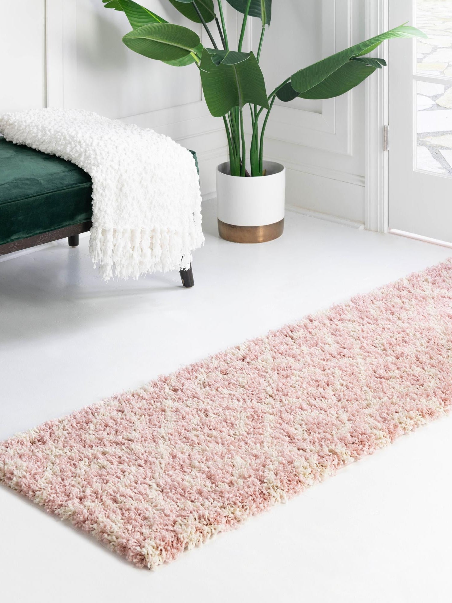 Light Pink 3' 3 x 16' 5 Trellis Shag Runner Area Rug Thick ...