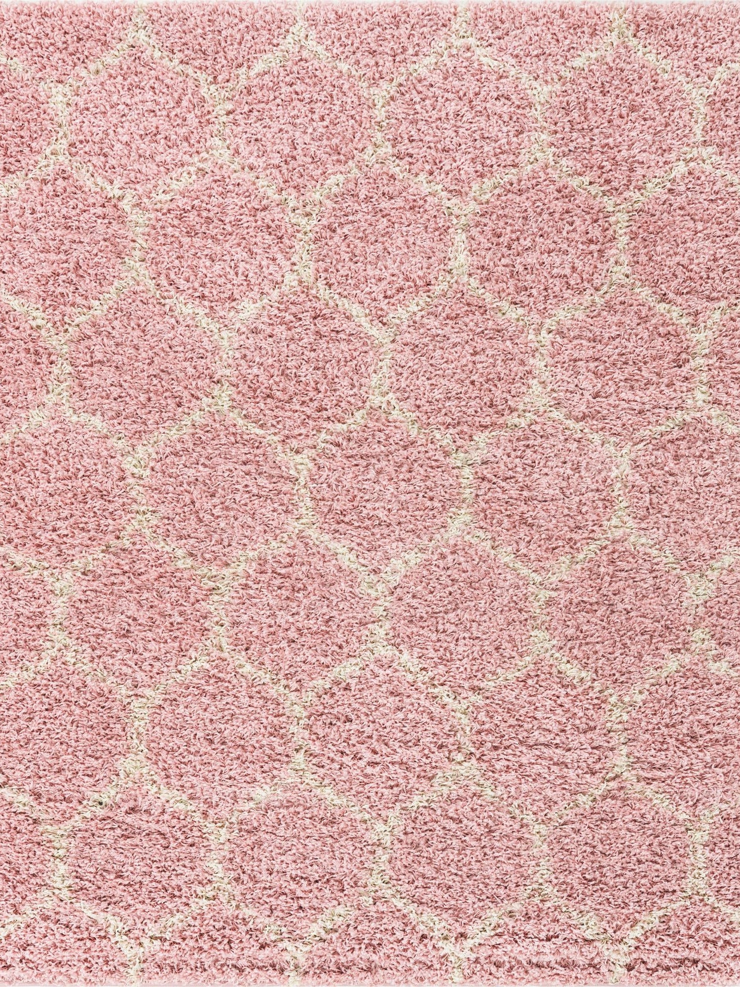Light Pink 3' 3 x 3' 3 Trellis Shag Square Area Rug Thick S...