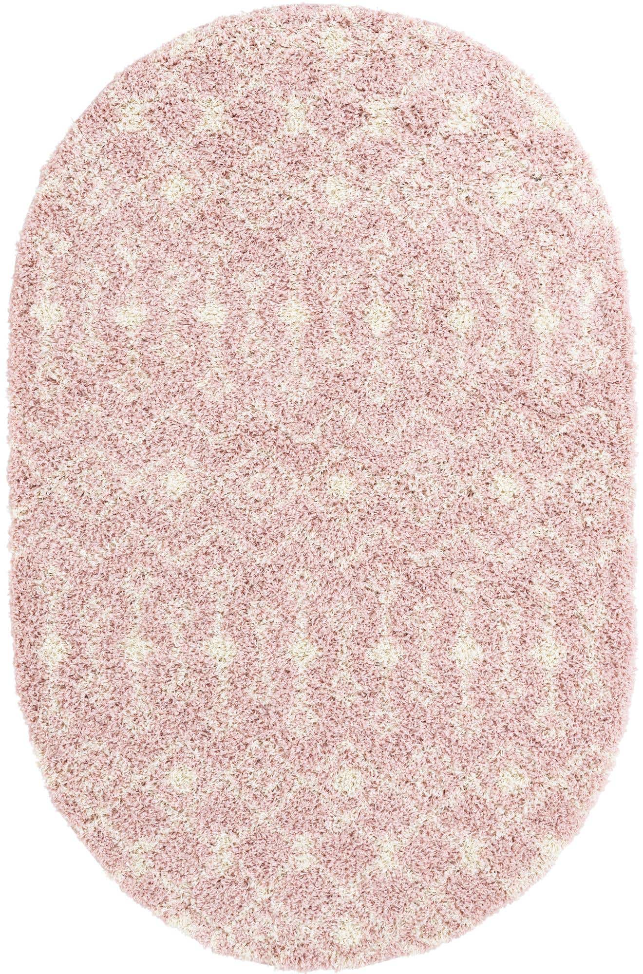 Light Pink 5' 3 x 8' Moroccan Trellis Shag Oval Area Rug Thick Soft Touch Fluffy & Plush Shaggy Pile