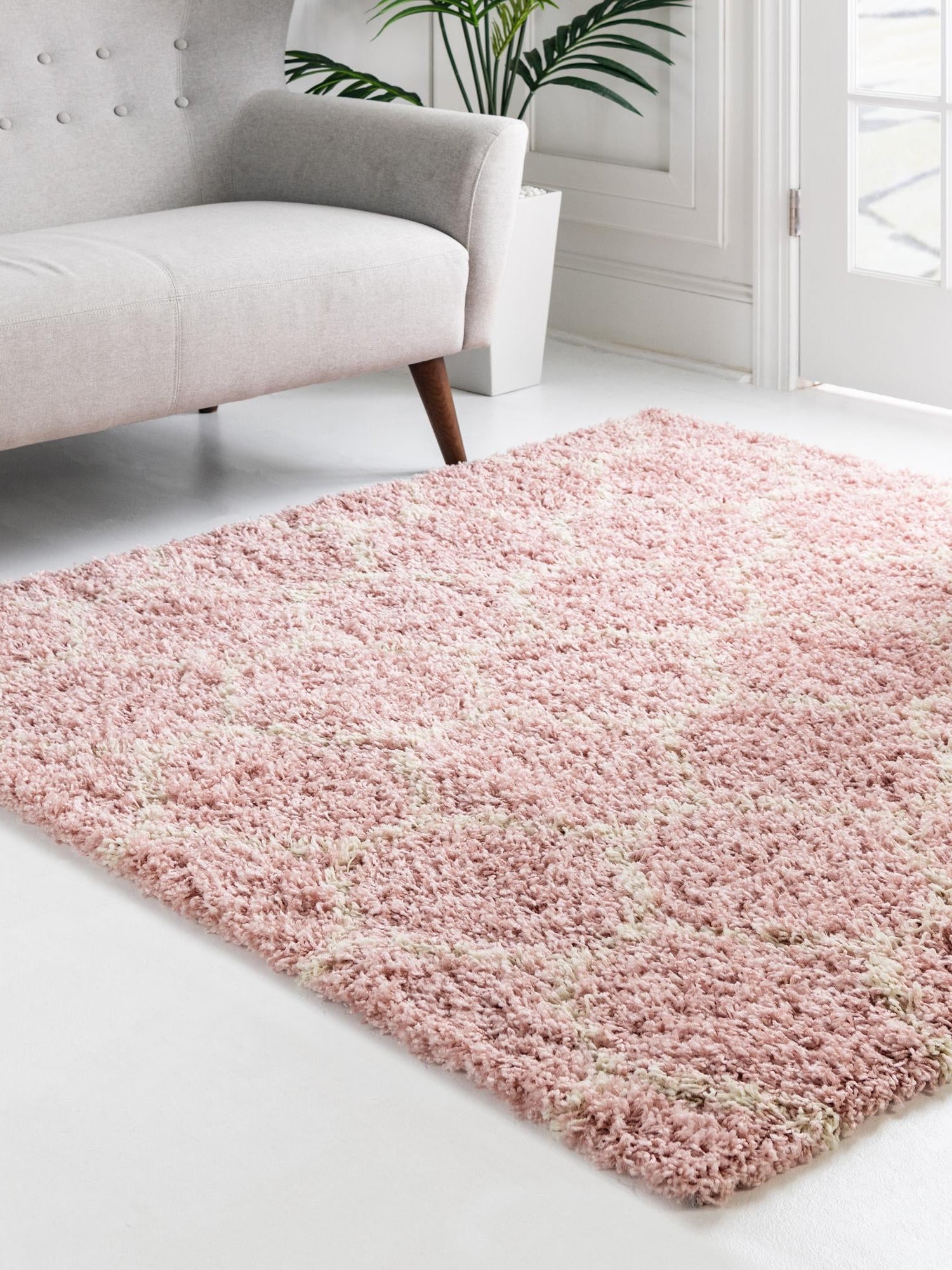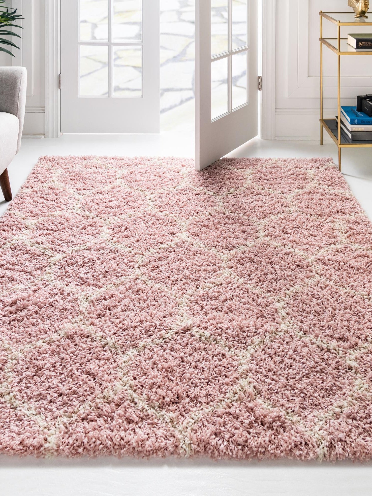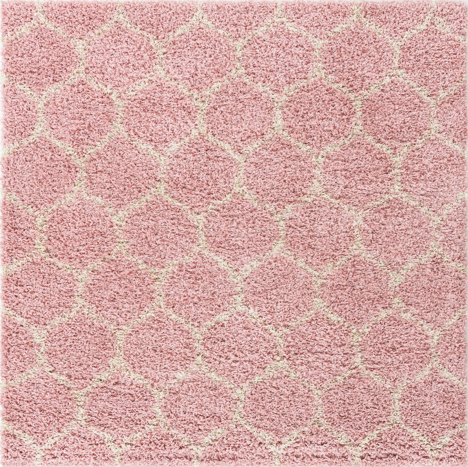 Light Pink 6' 1 x 6' 1 Trellis Shag Square Area Rug Thick S...