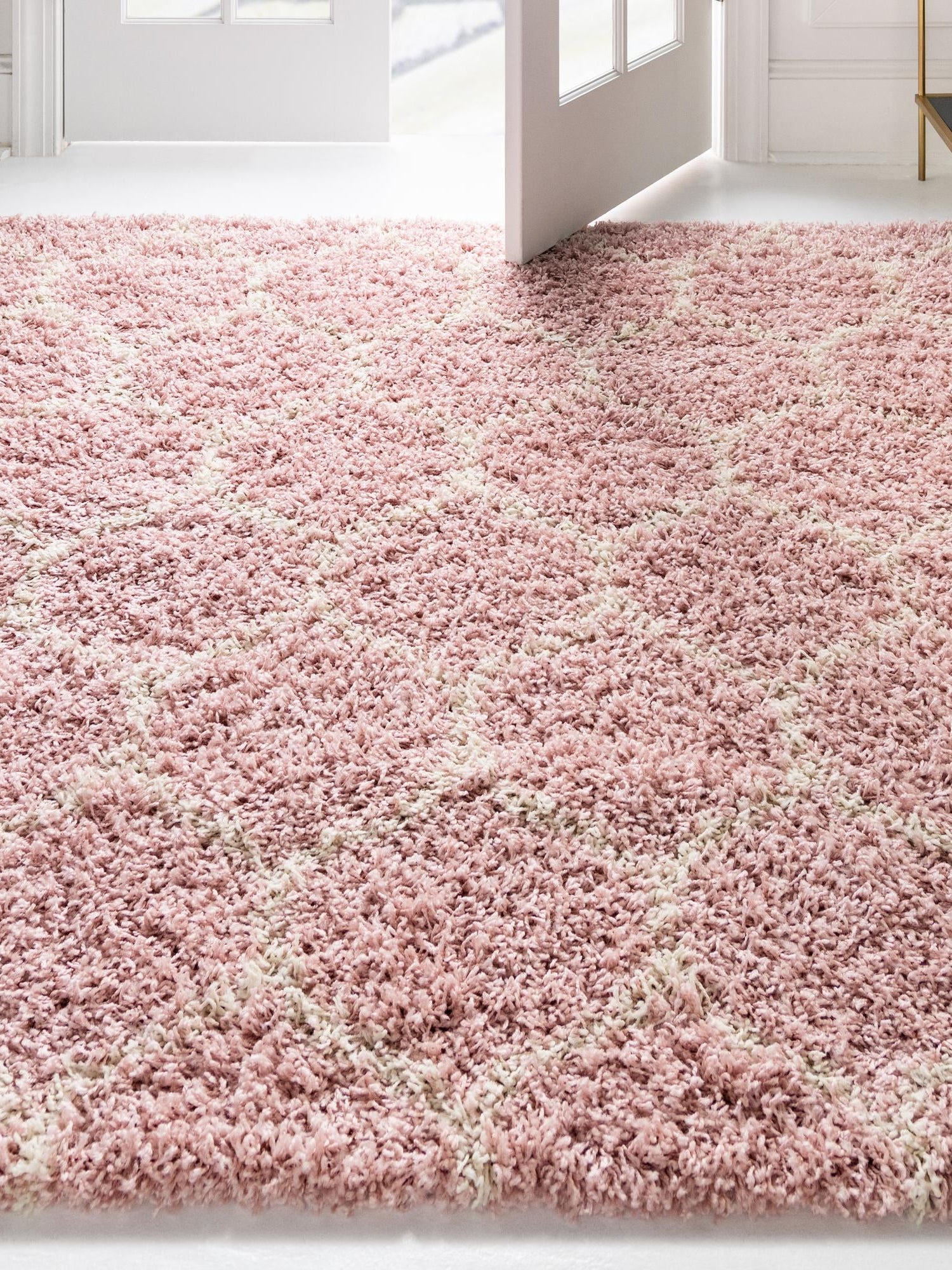 Light Pink 6' 1 x 6' 1 Trellis Shag Square Area Rug Thick Soft Touch Fluffy & Plush Shaggy Pile