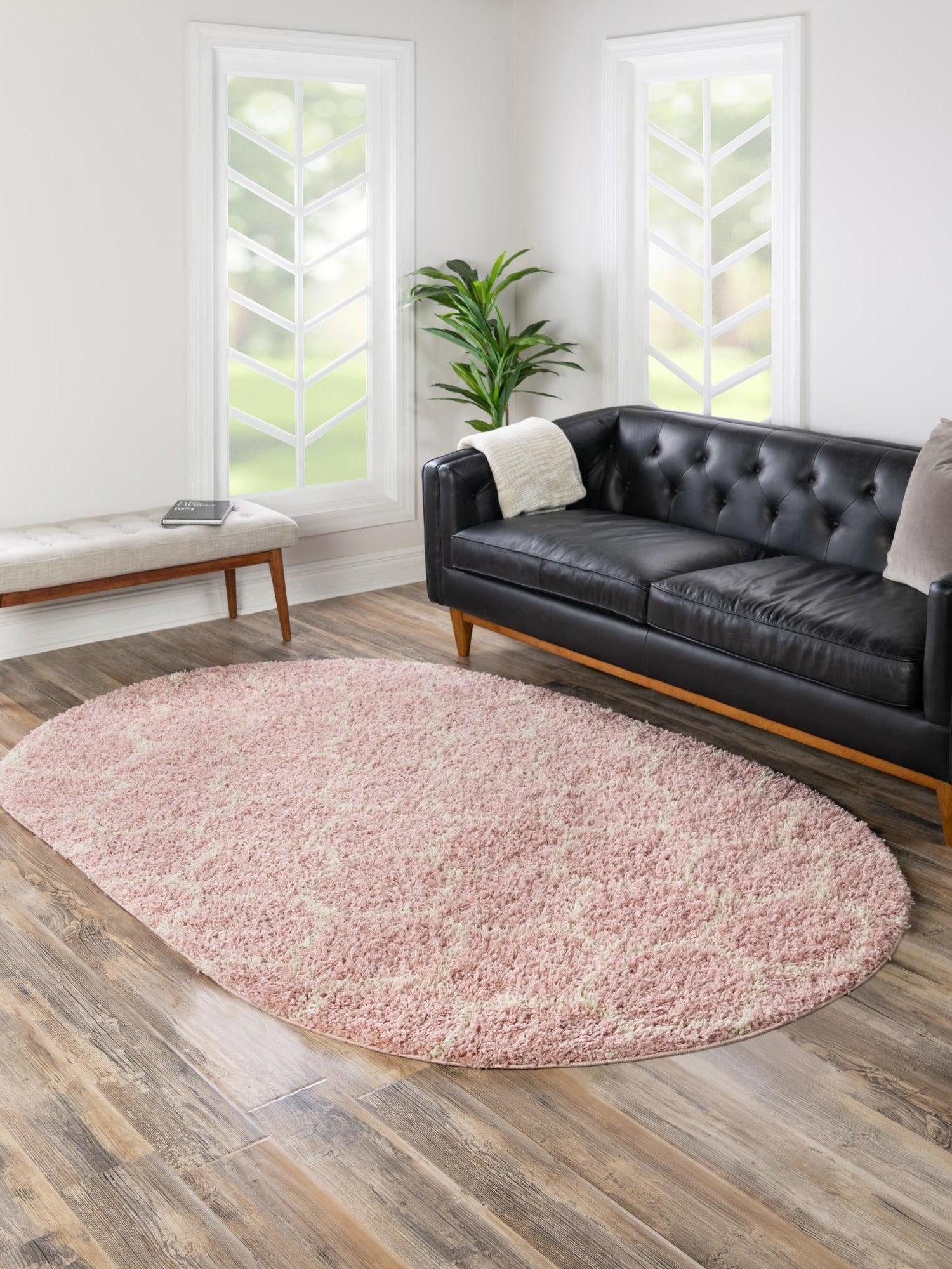 Light Pink 7' 10 x 10' Trellis Shag Oval Area Rug Thick Sof...